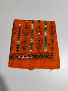 This exquisite handcrafted necklace features a stunning Dokra-style brass pendant in the shape of a bull’s head with large, intricate horns. The pendant is suspended on a durable black cotton thread, accented with traditional red thread knots for a bold ethnic touch. A perfect blend of tribal art and contemporary fashion, this necklace adds a rustic yet stylish charm to any outfit. Ideal for cultural events, festivals, or statement everyday wear.