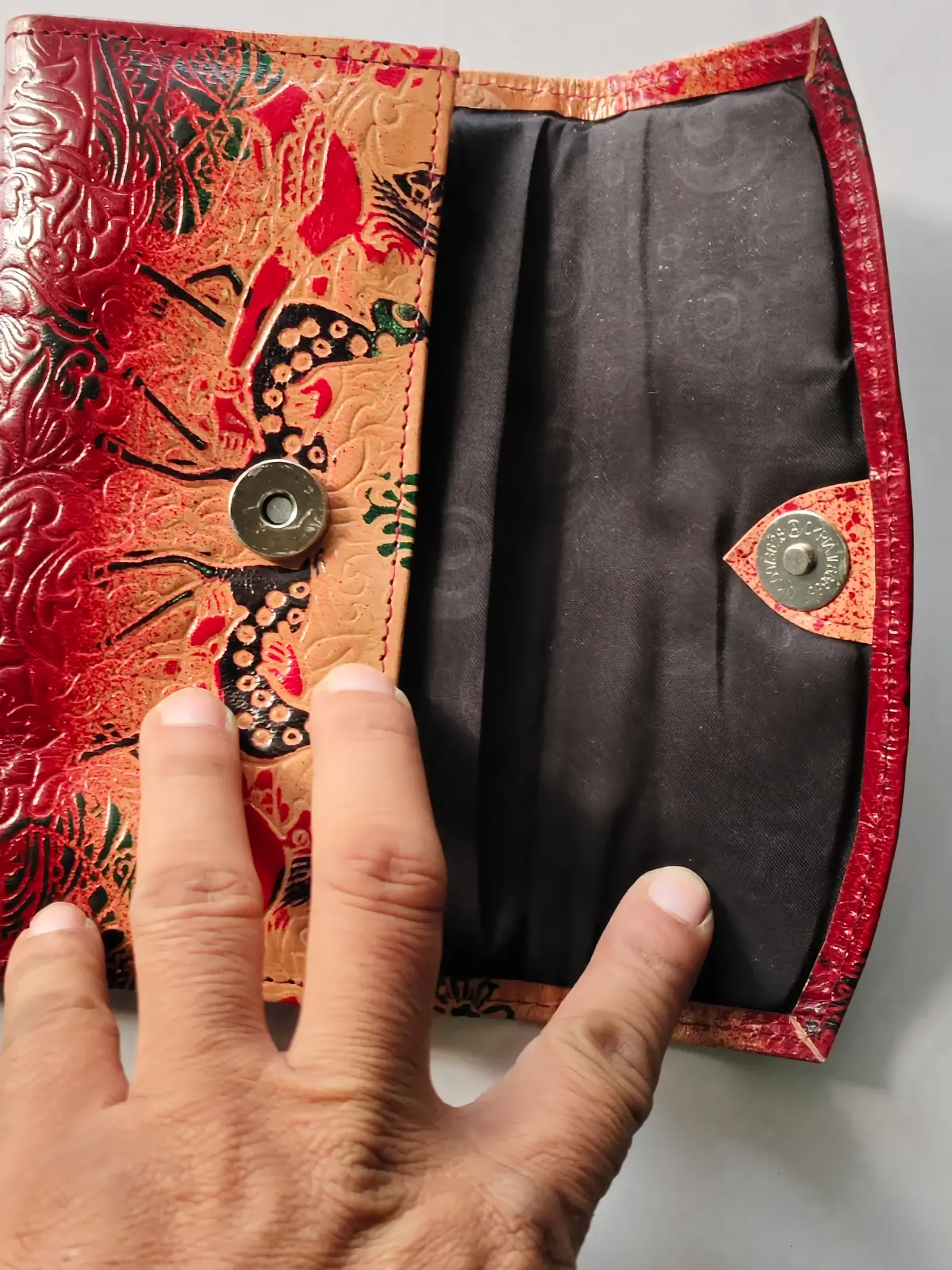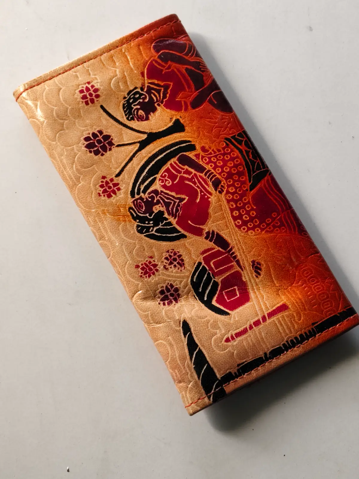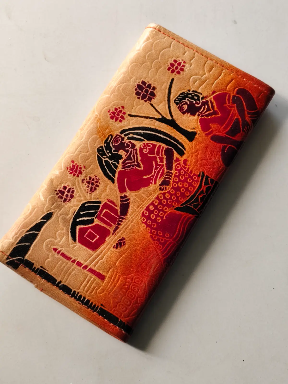 LEATHER HANDICRAFT Shantiniketan Pure Leather Multi Colour Traditional Printed Clutch Purse for Women and Girls |đ Size: 7 inch Long à 4.5 inch Wide (Quantity 1 Piece)