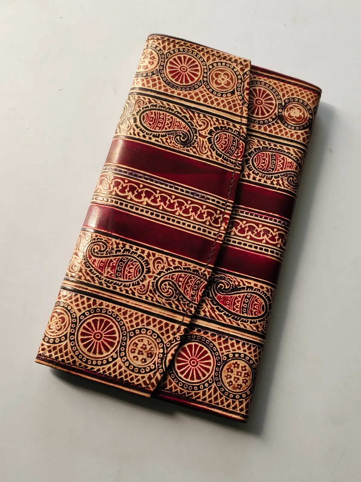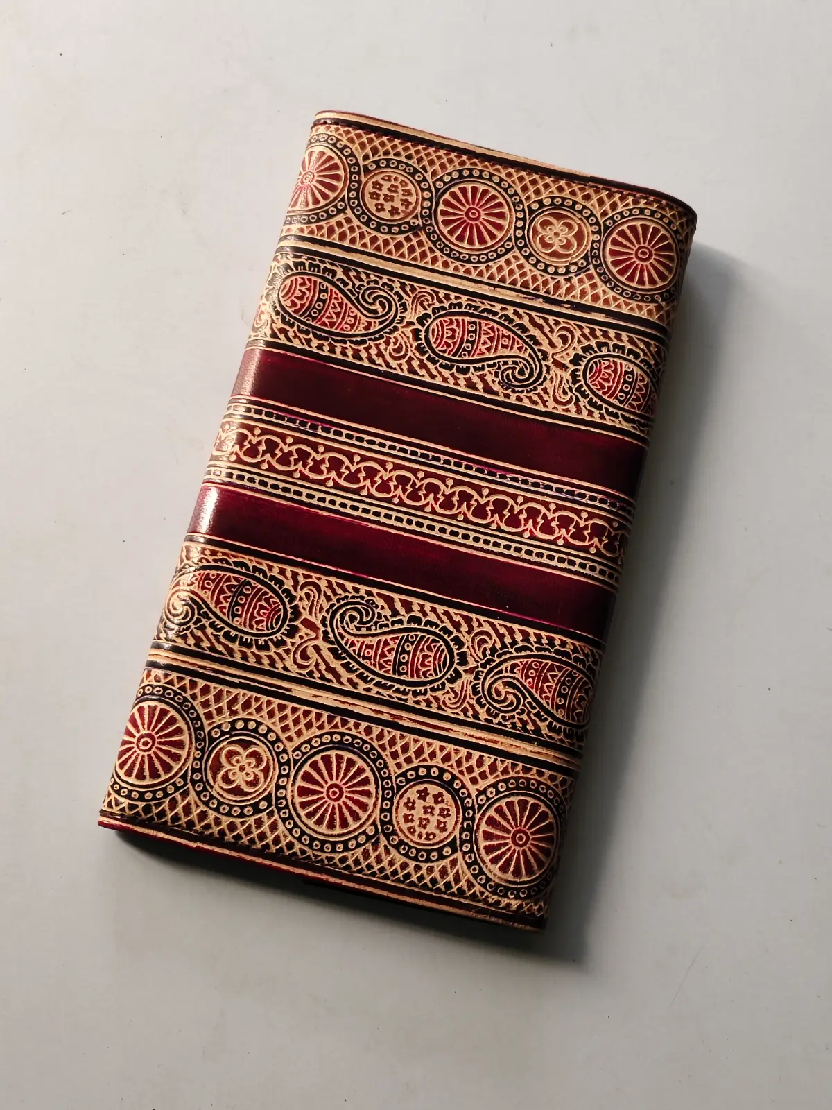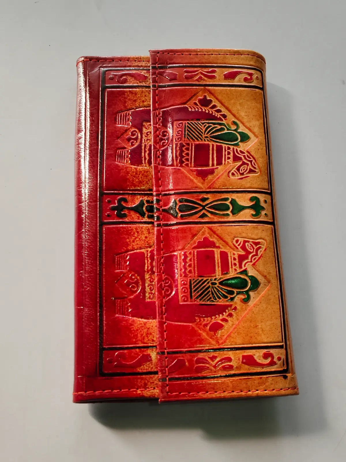 LEATHER HANDICRAFT Shantiniketan Pure Leather Multi Colour Traditional Printed Clutch Purse for Women and Girls |đ Size: 7 inch Long à 4.5 inch Wide (Quantity 1 Piece)