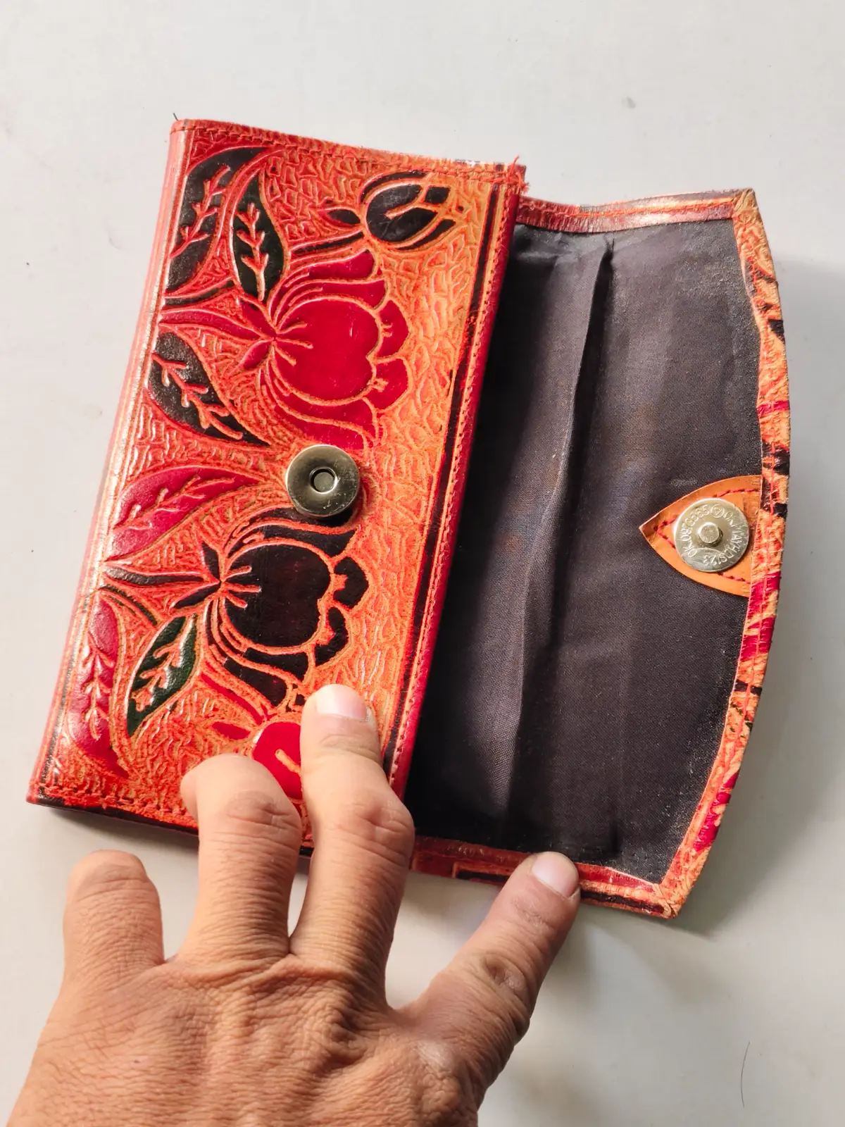 LEATHER HANDICRAFT Shantiniketan Pure Leather Multi Colour Traditional Printed Clutch Purse for Women and Girls |📏 Size: 7 inch Long × 4 inch Wide (Quantity 1 Piece)