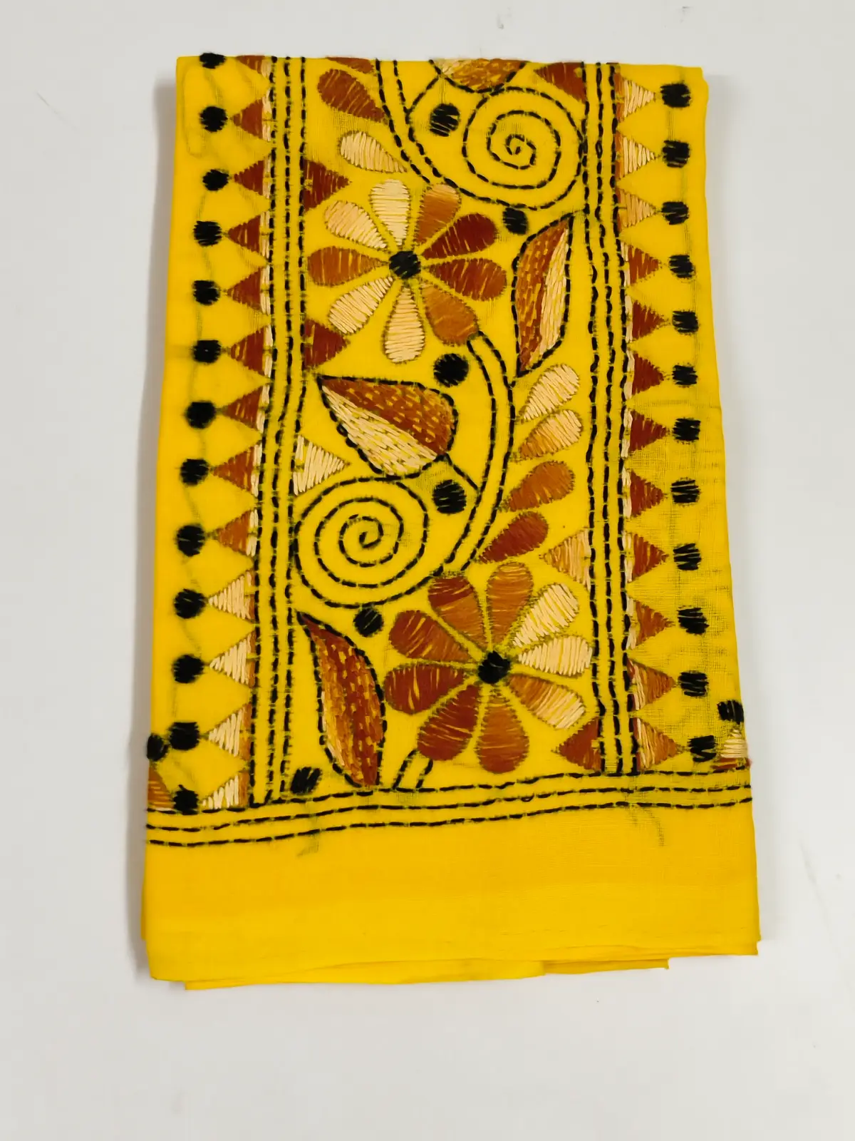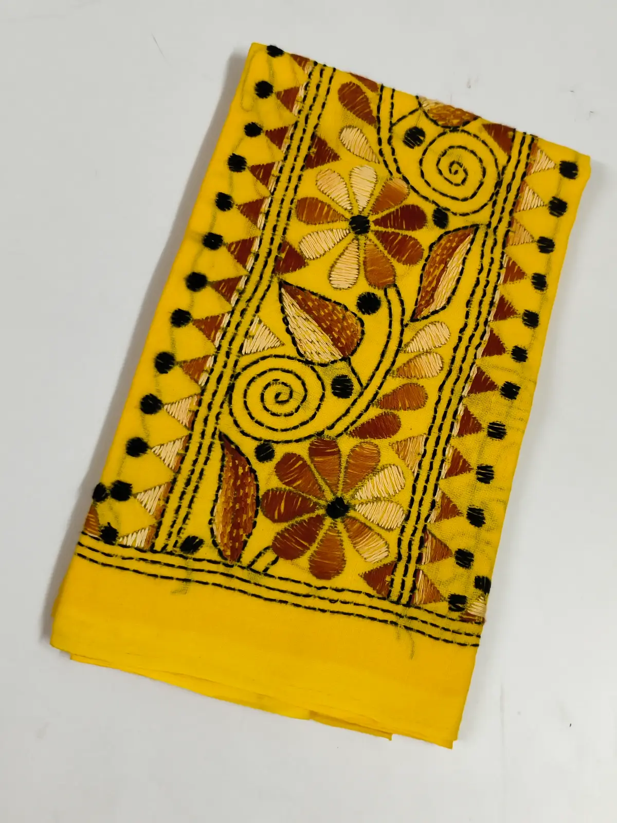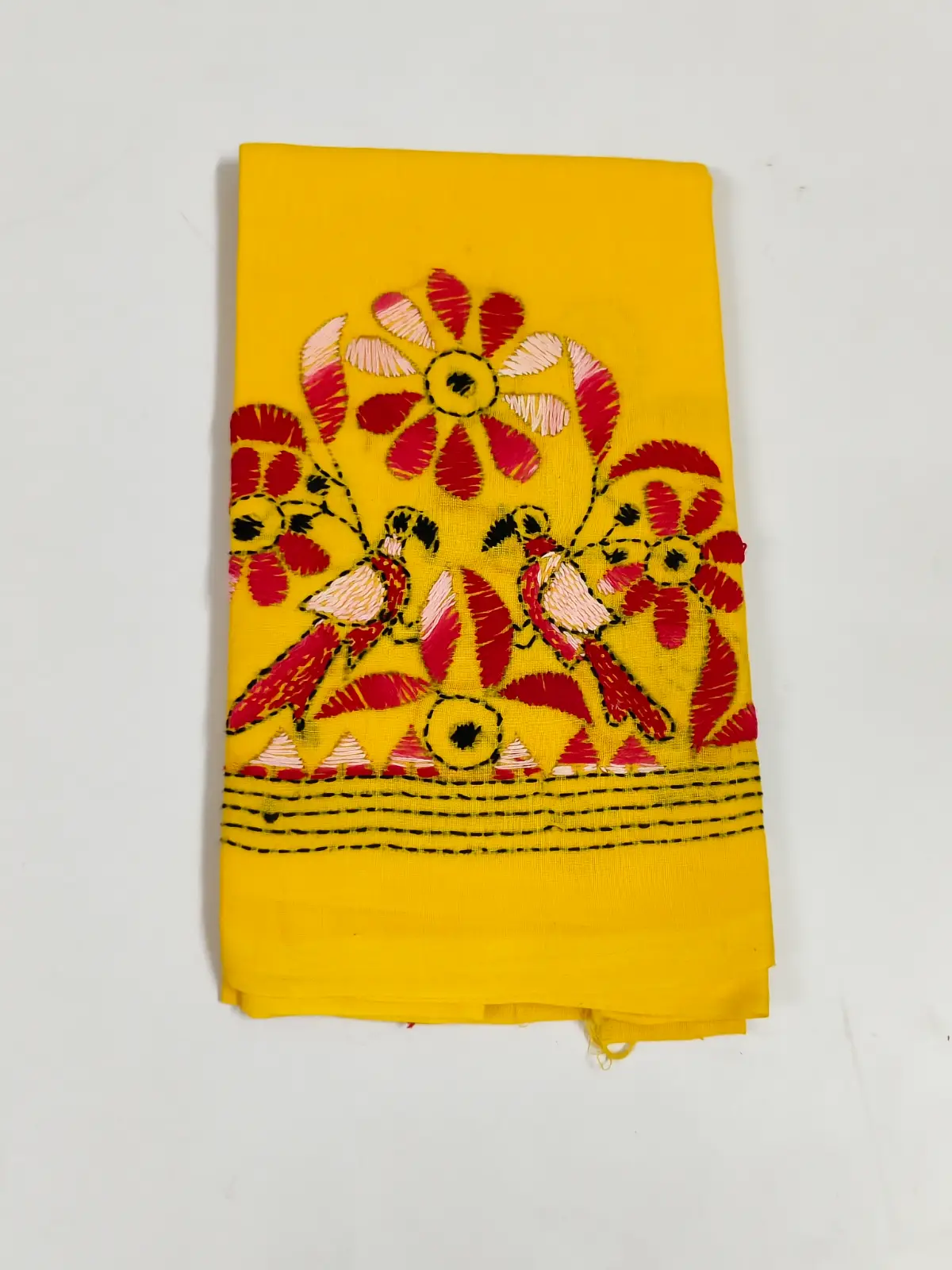Handmade Yellow Cotton Kantha Stitch Blouse Material