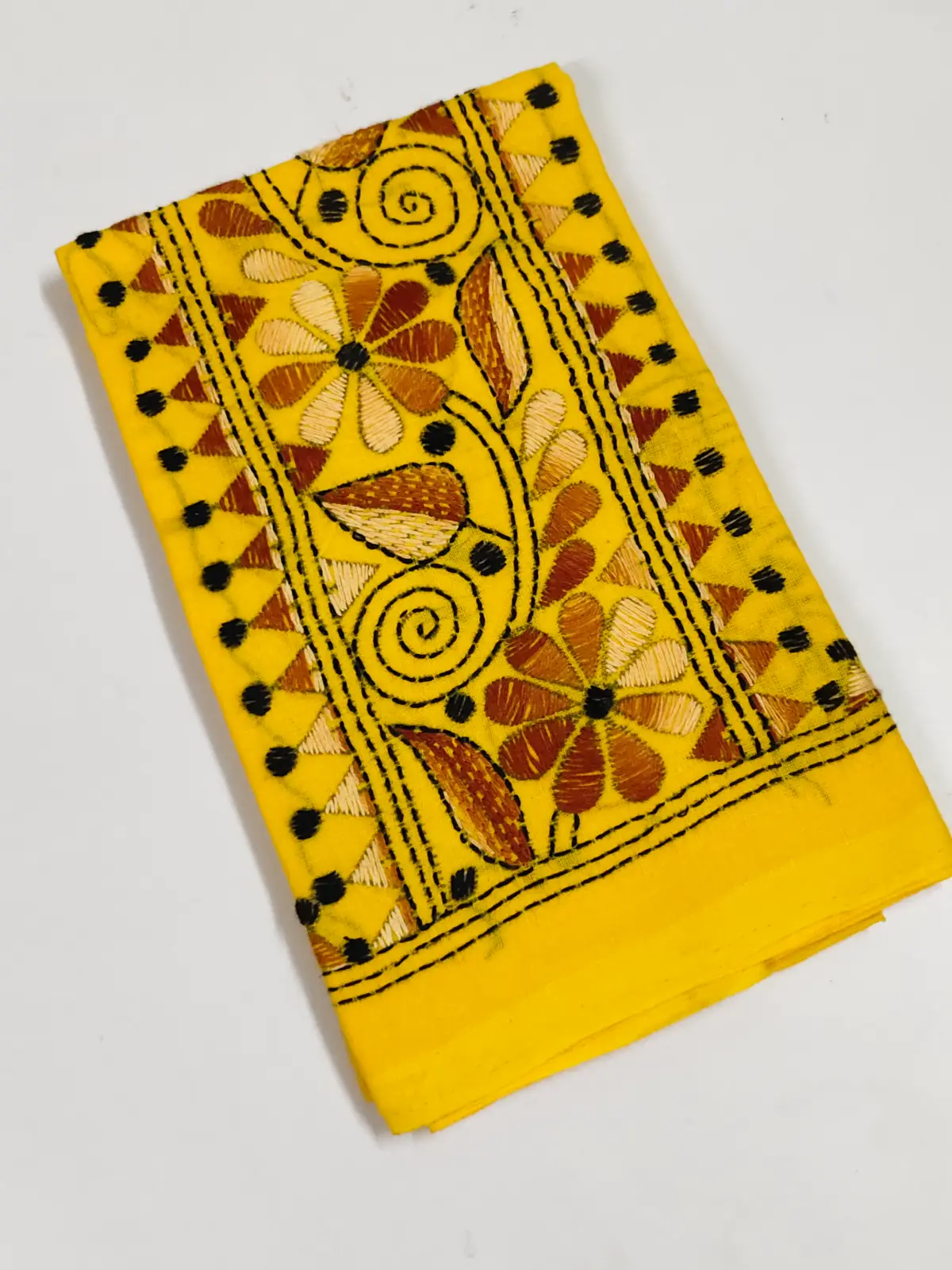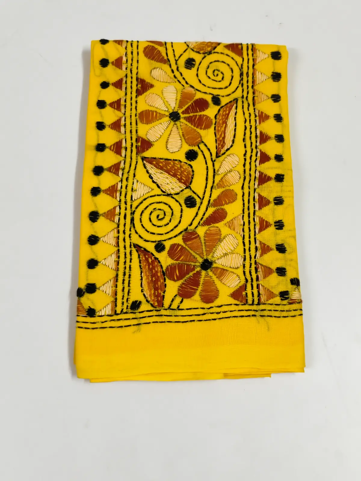 Handmade Yellow Cotton Kantha Stitch Blouse Piece