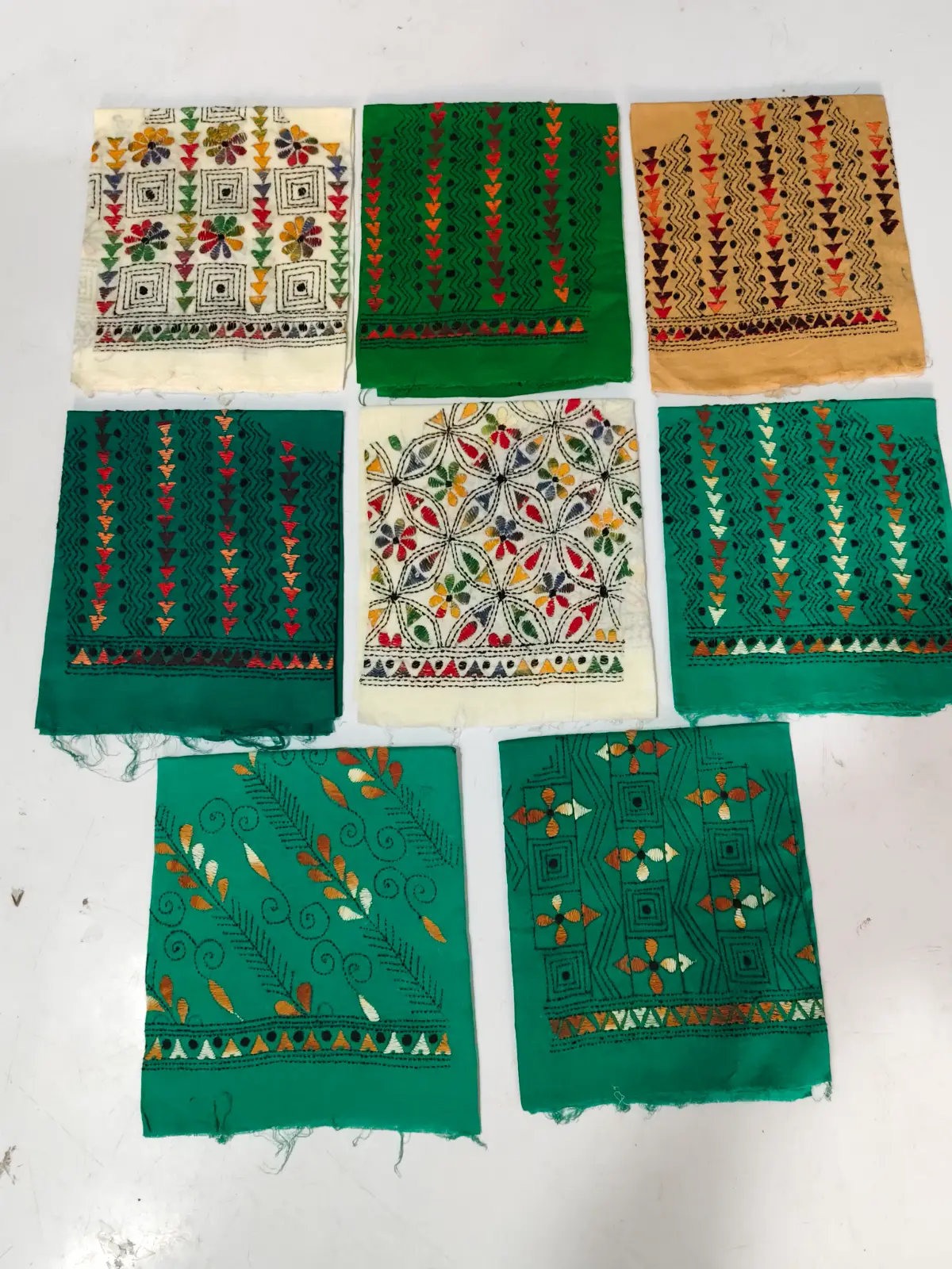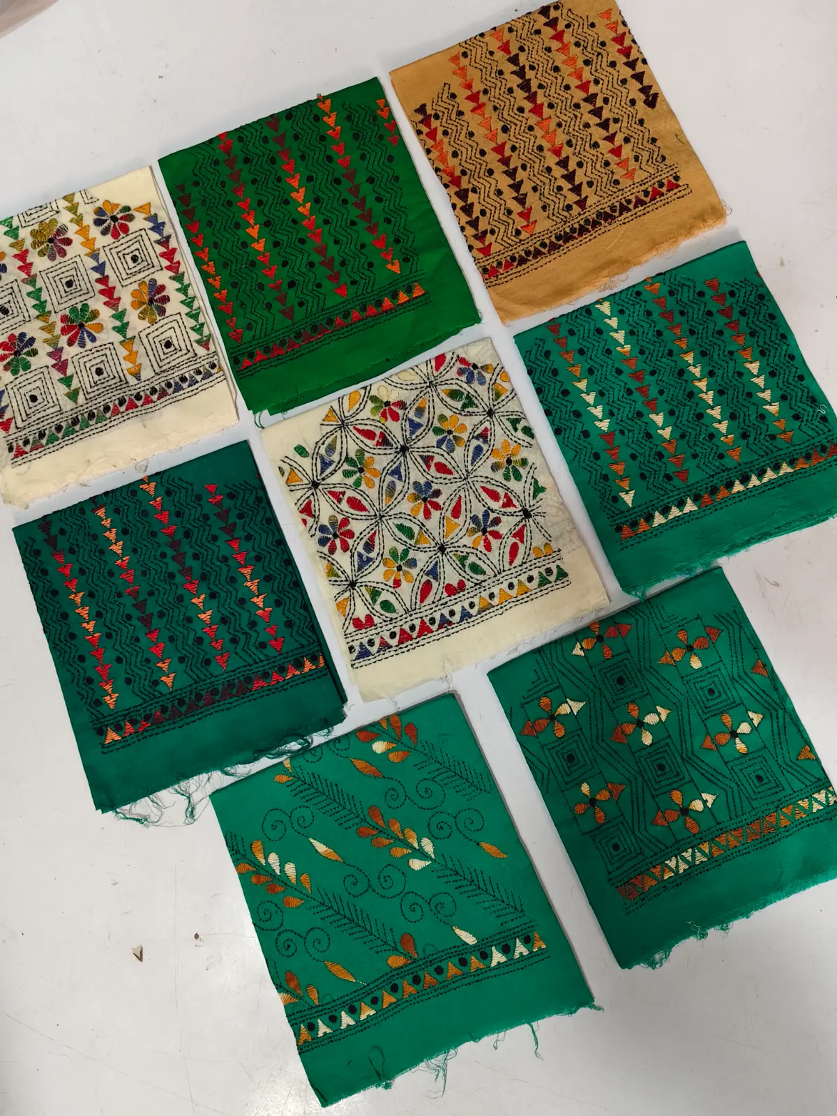 Handmade: – Women’s Blouse Material. The back side of the blouse is full work, and both hands are worked | Material: – Cotton Fabric – Size: 39×34 inches (Quantity 12 piece)