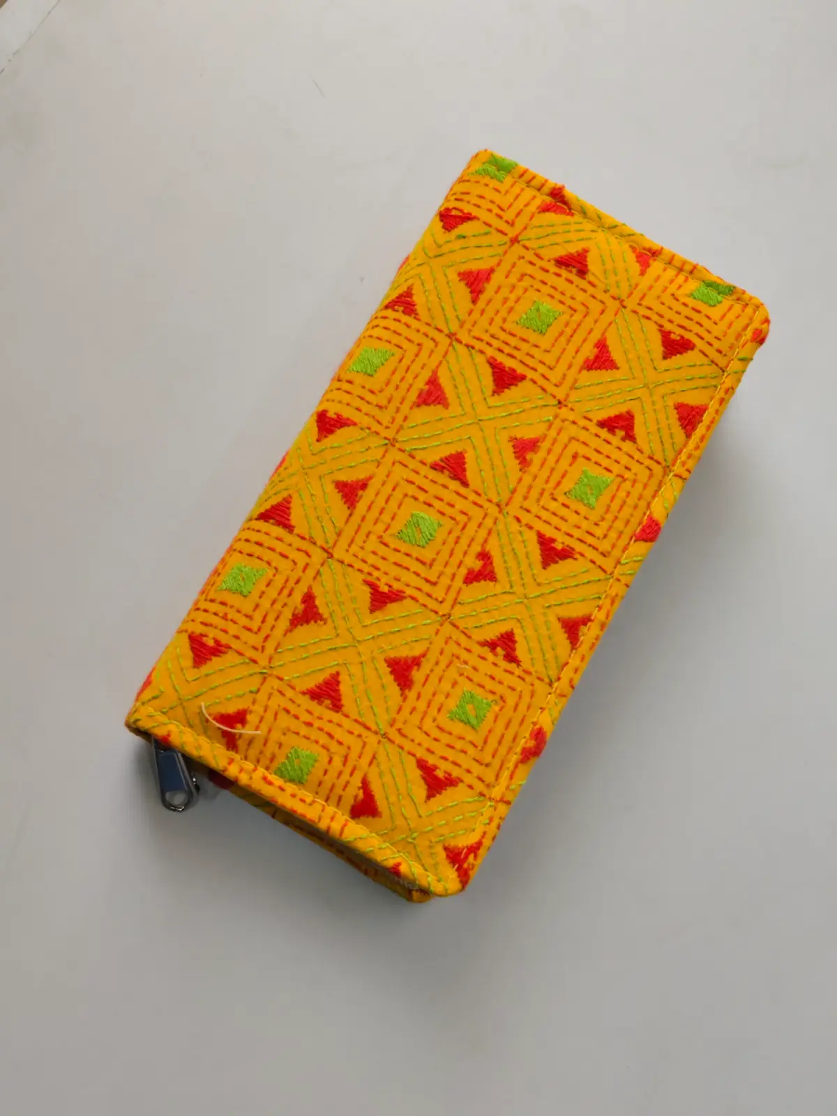 Kantha Cotton Zip Wallet β Double Zipper Compartments Yellow