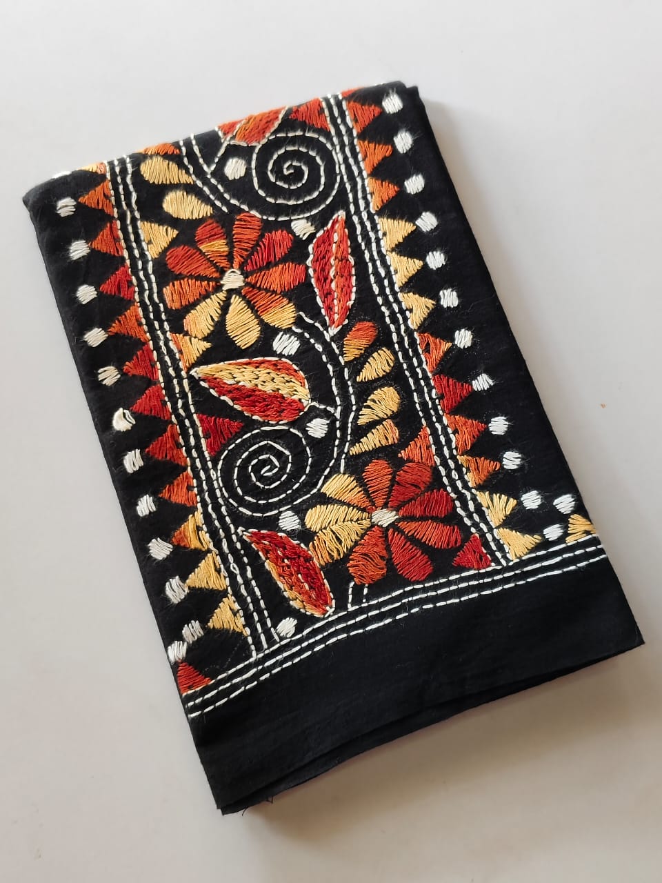 Black Kantha Stitch Blouse Piece for Ladies Maroon cream thread work