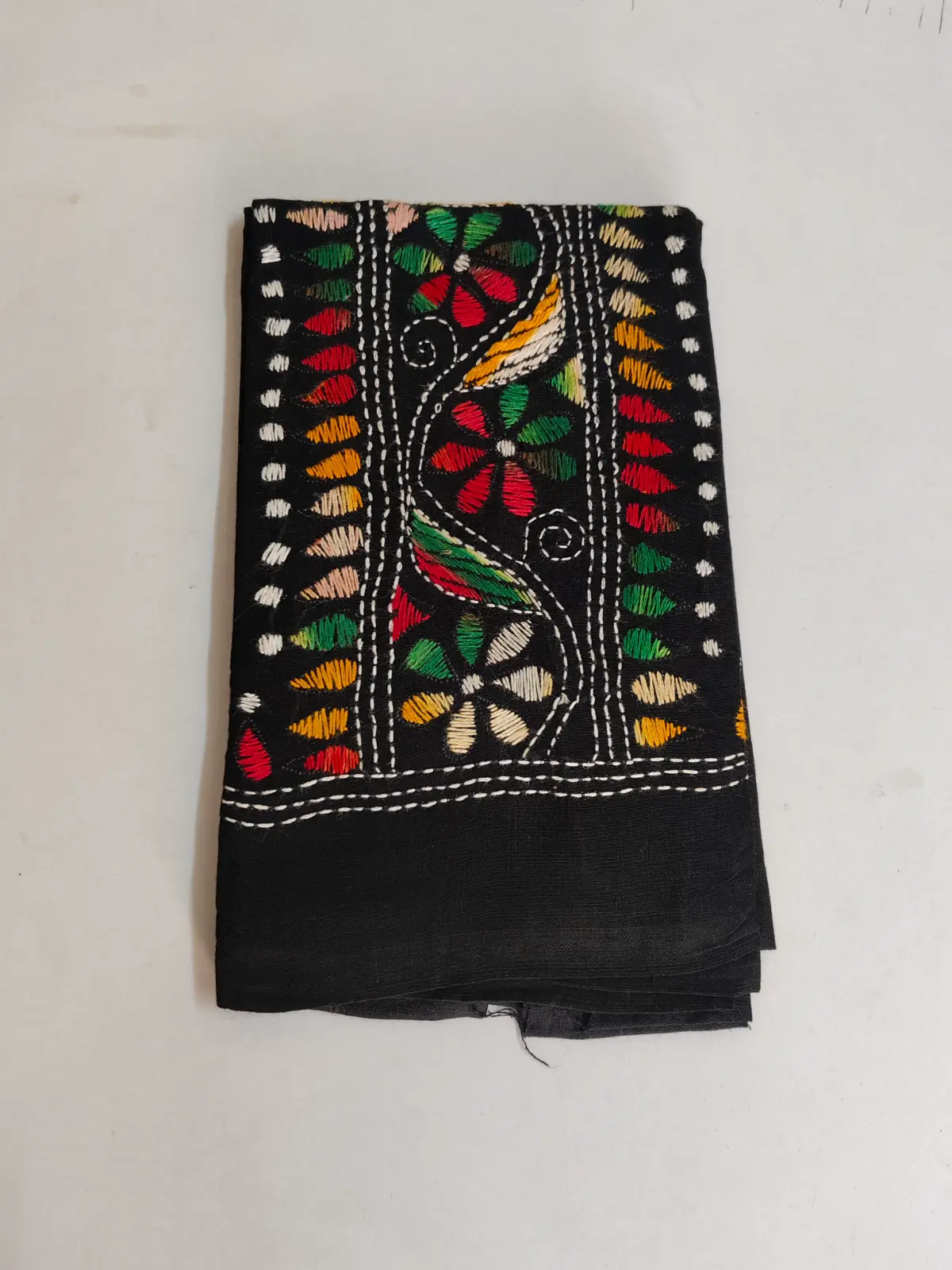 Kantha Stitch Blouse Piece – Multicolor Threadwork (Black)