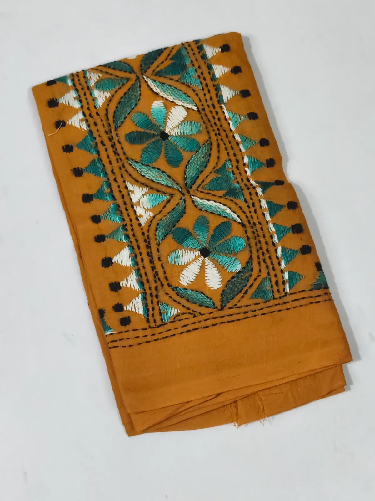 Add a touch of ethnic beauty to your outfit with this hand embroidered Bengali Kantha Stitch Blouse piece. Each piece is crafted with utmost care, matching your festive mood through intricate thread work and vibrant colors.