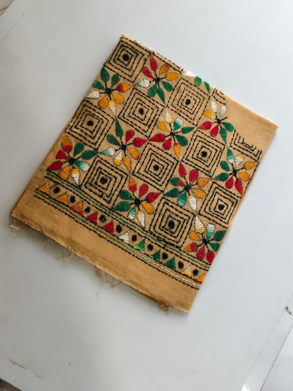 This product is a cotton Kantha stitch blouse piece. It is an Indian rural craft. These products are made by rural women. It is one of the most valuable and traditional handicrafts of India.