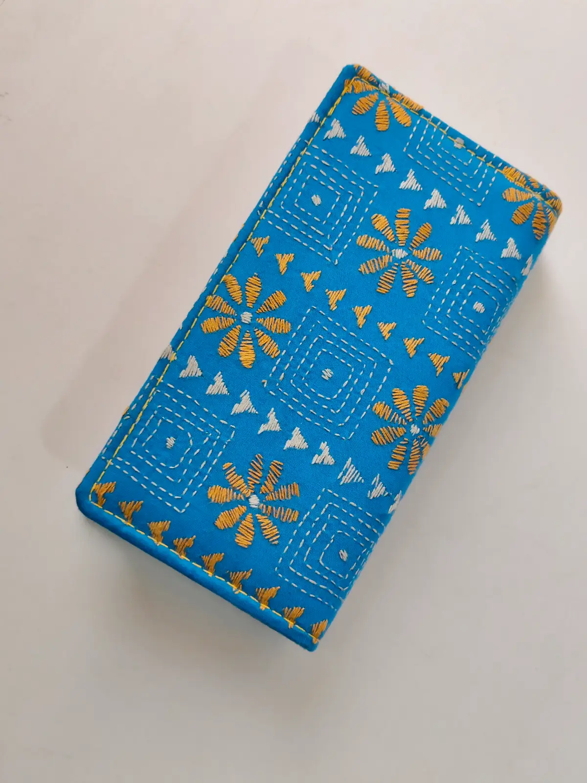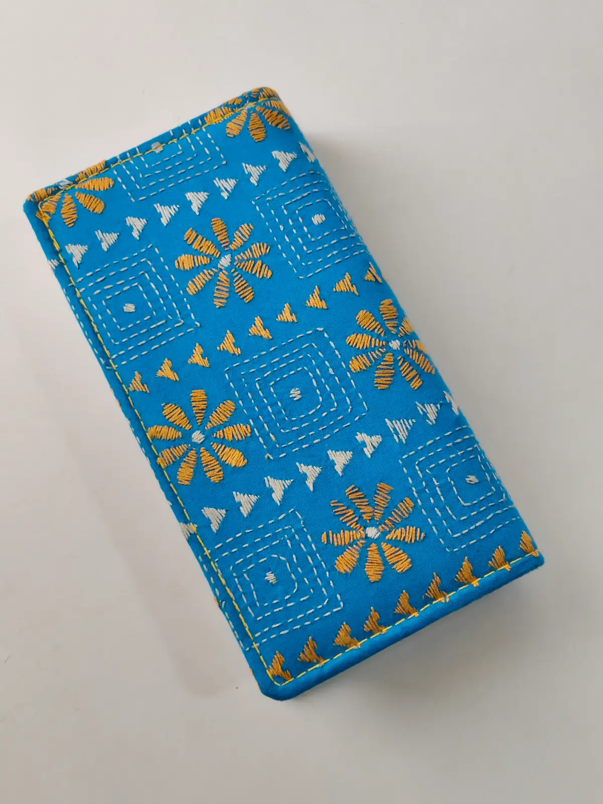 Stylish Handcrafted cotton wallet with Kantha stitch embroidery. Features two zipper compartments and Multiple pockets. 📏 Size: Long 8 inch, Wide 4 inch, Height 1.5 inch (Quantity 1 piece)