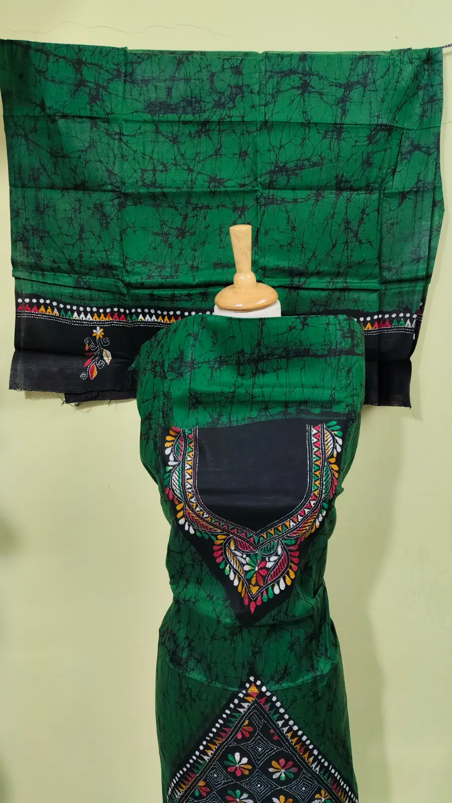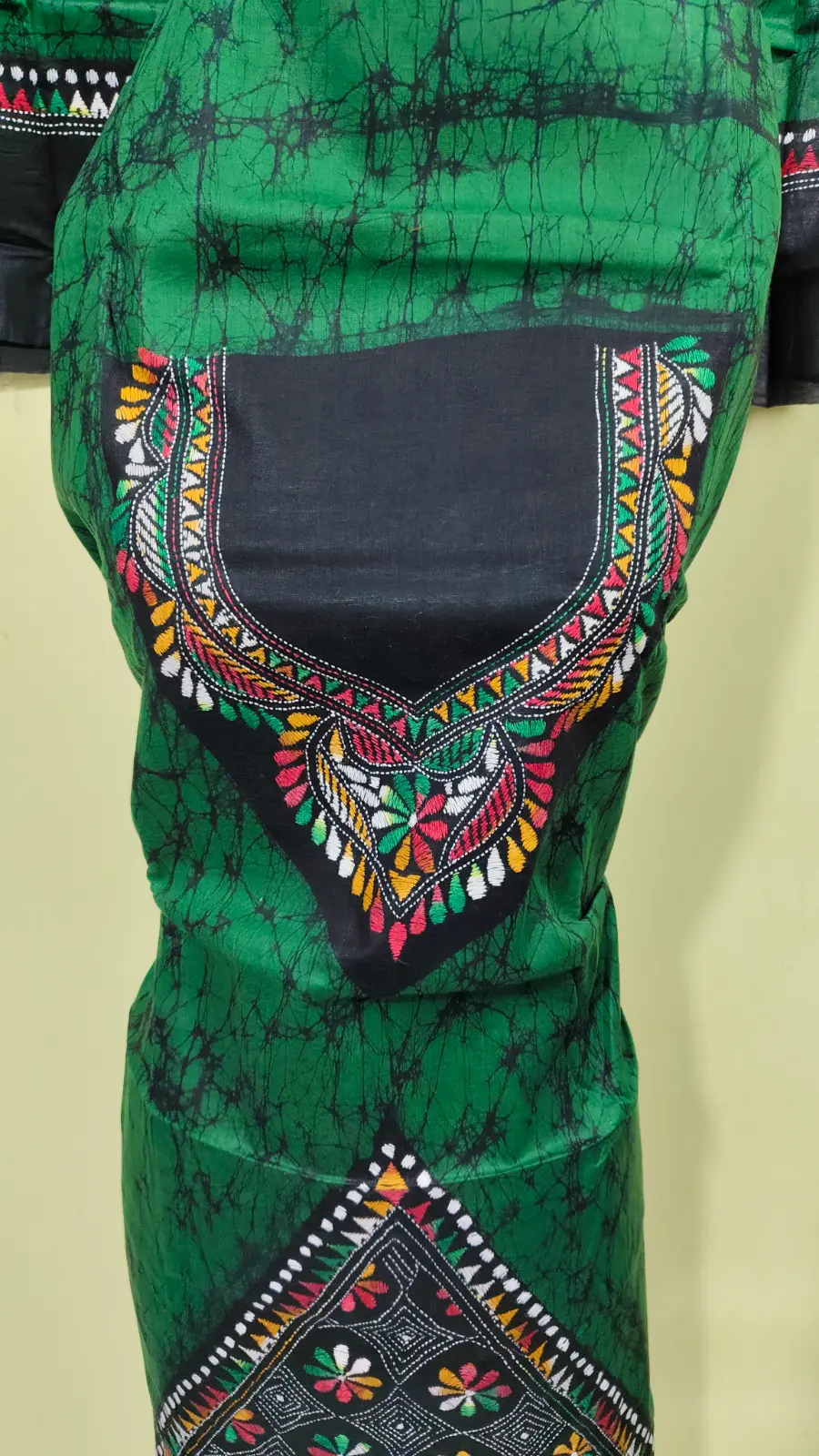 Kantha Stitch Hand Batik Salwar Suit (Green)