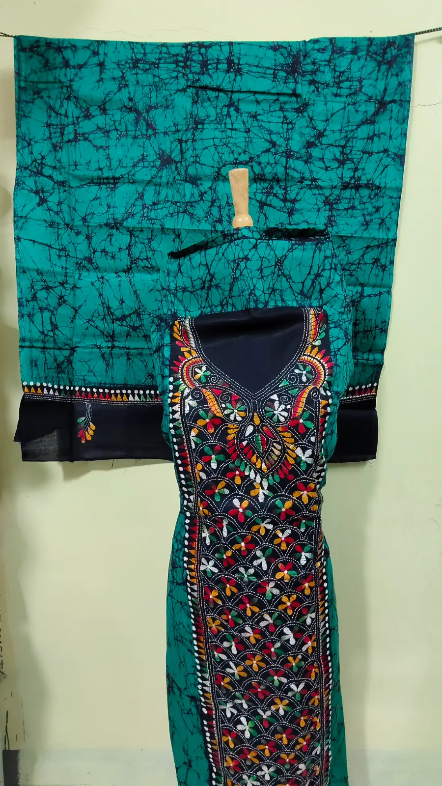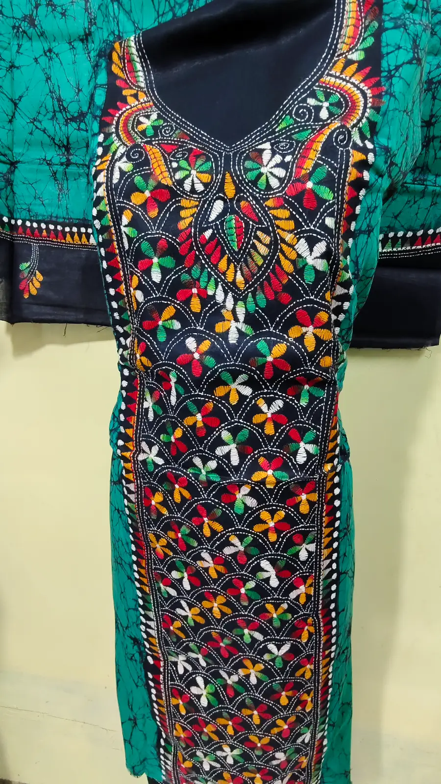 Kantha Stitch Hand Batik Salwar Suit – Premium with Multicolor Embroidery