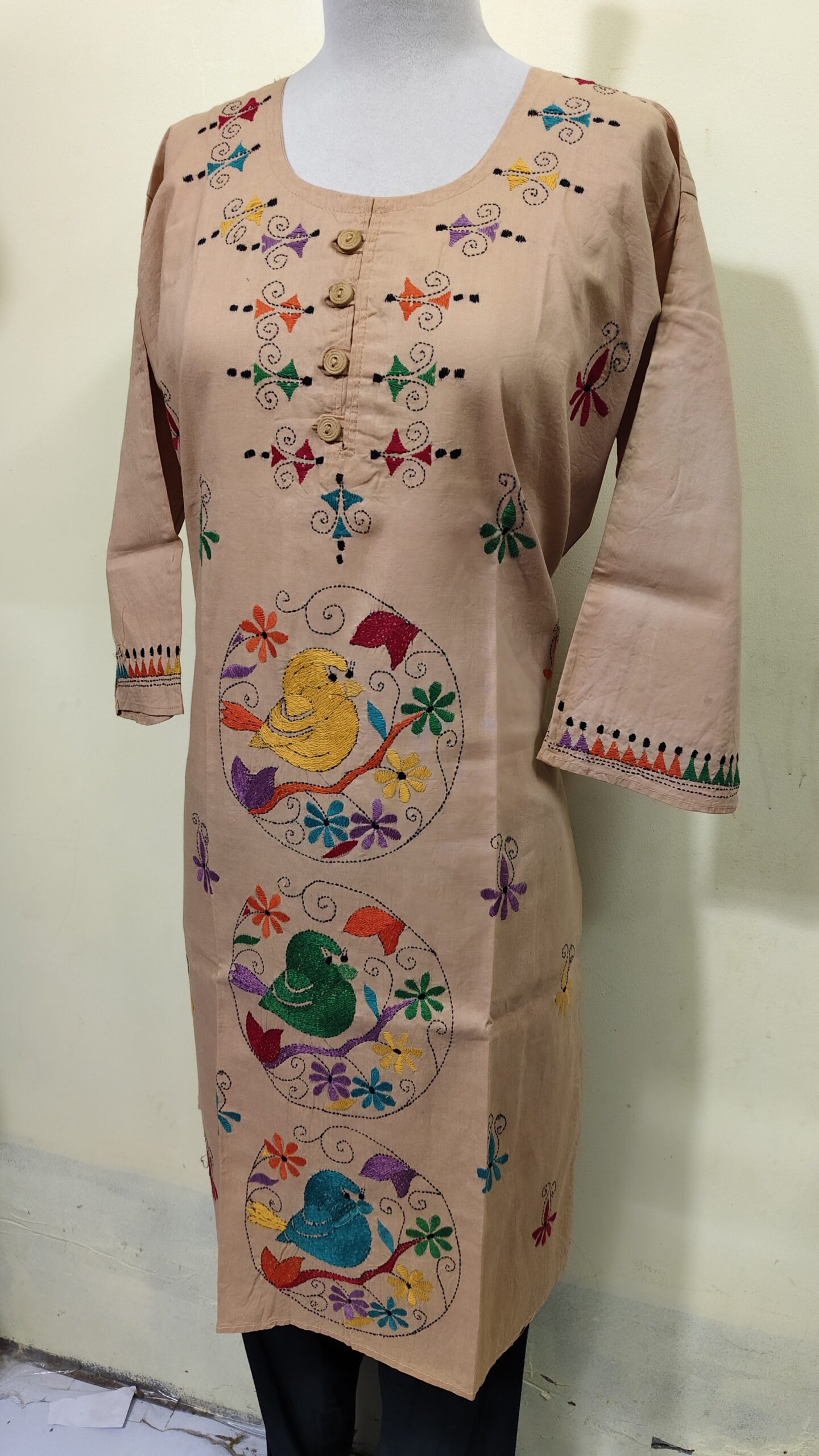 This is a Handcrafted Kantha Stitch Long Kurti, Suitable for Women and girls. (Quantity: 1 piece)
