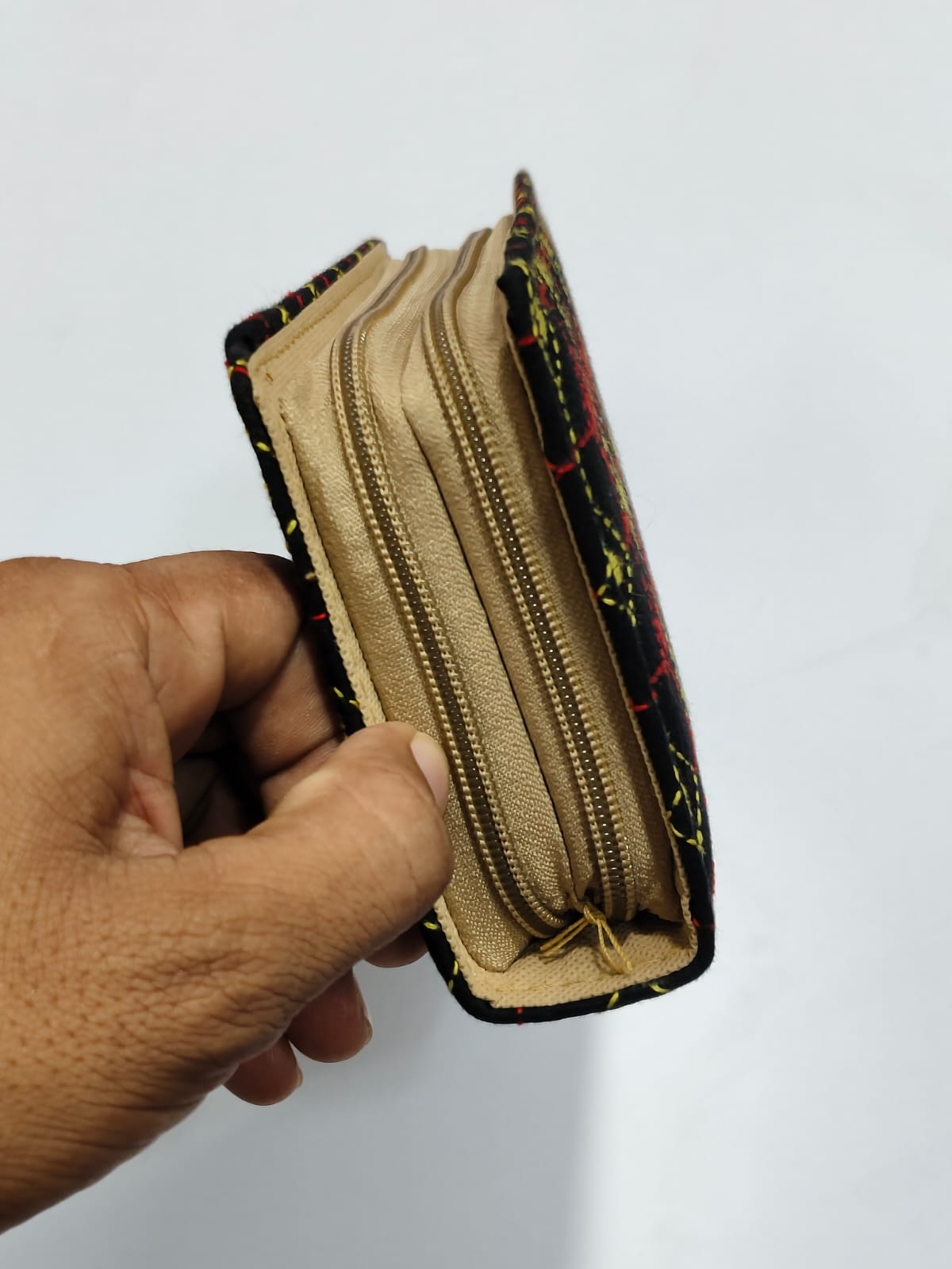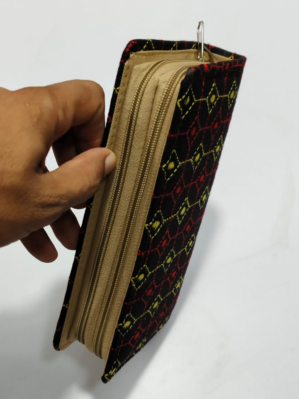 Stylish Handcrafted cotton wallet with Kantha stitch embroidery. Features two zipper compartments and Multiple pockets. π Size: Long 8 inch, Wide 4 inch, Height 1.5 inch (Quantity 1 piece)