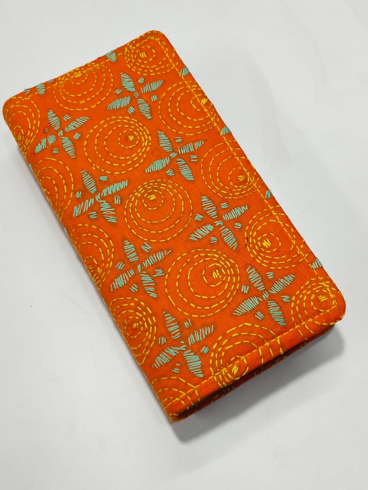 Design: Traditional Kantha Stitch on orange Base