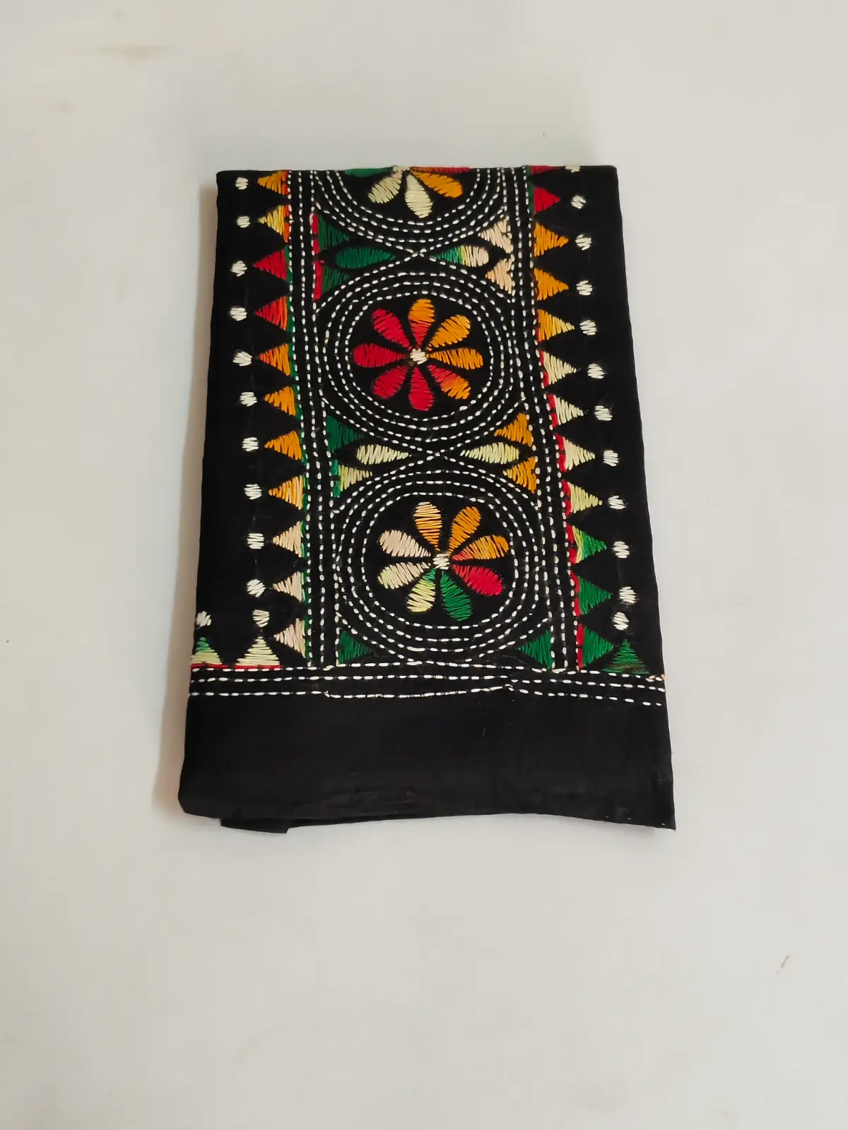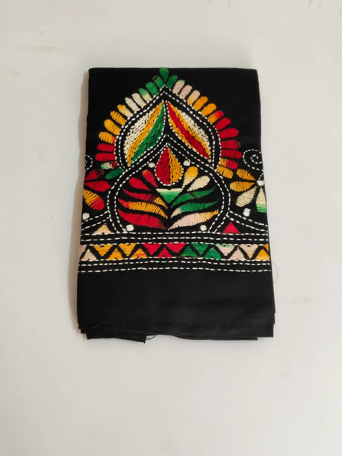Embroidery: Handcrafted Kantha stitch floral and motif patterns