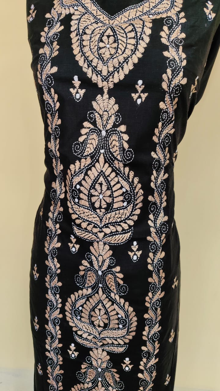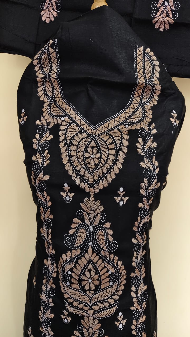 Kantha Stitch Salwar Suit Material – Black with Peach Embroidery