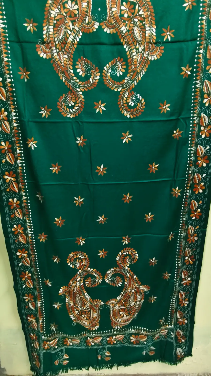 Kantha Stitch Woolen Shawl (Forest green )