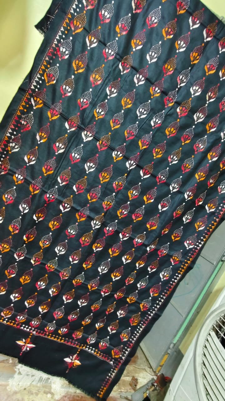 Warm wool fabric kantha stitch wool shawl with all work done by hand on the shawl. Size: Length – 2 Meter, Wide – 36 Inche, (Color: Black ) (Quantity 1 piece)