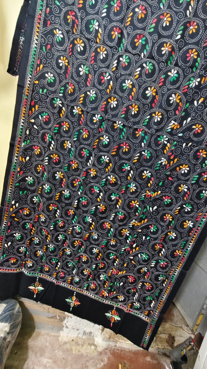 Warm wool fabric kantha stitch wool shawl with all work done by hand on the shawl. Size: Length – 2 Meter, Wide – 36 Inche, (Color: Black) (Quantity 1 piece)