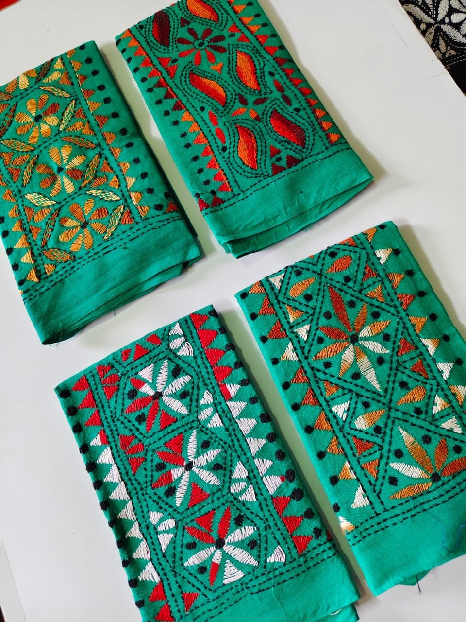 (Different Color 4 pieces) | only Sides of hands and back border style handwork Kantha stitch | Material:- pure cotton (fabric scope) better quality cotton.