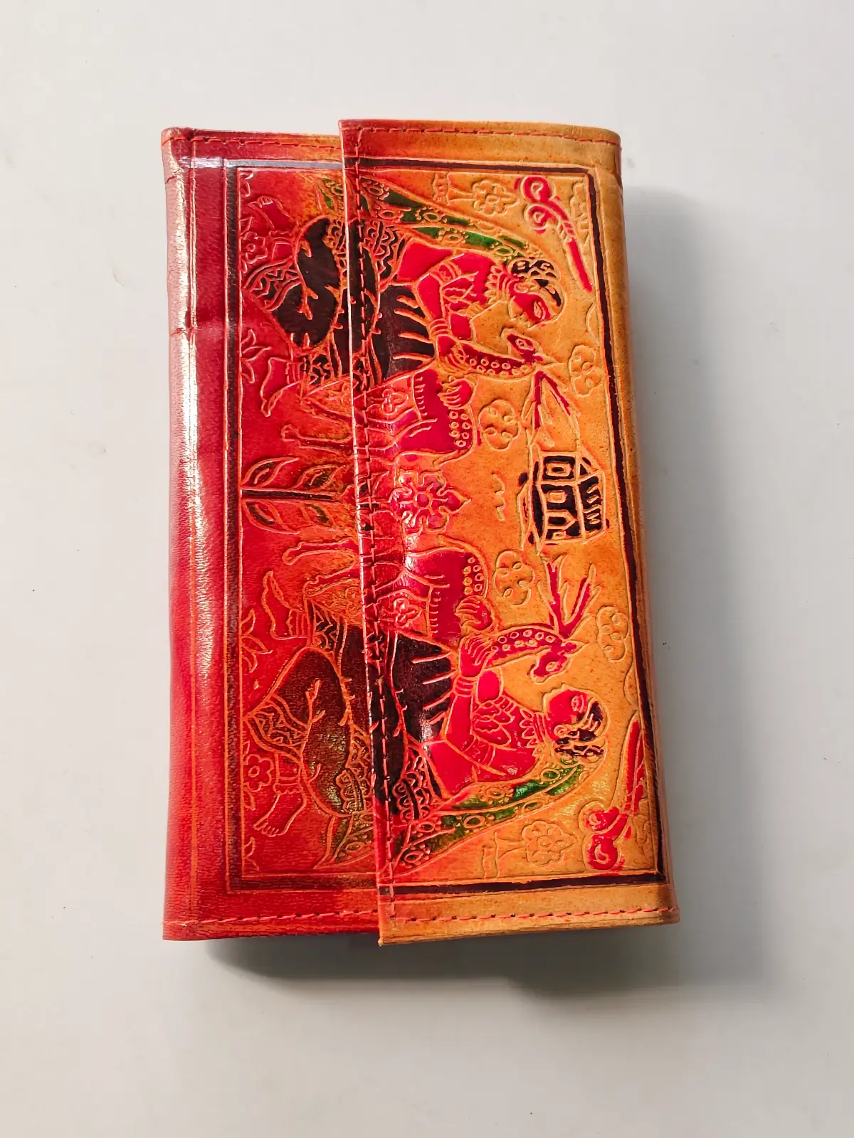 LEATHER HANDICRAFT Shantiniketan Pure Leather Multi Colour Traditional Printed Clutch Purse for Women and Girls |đ Size: 8 inch Long à 5 inch Wide (Quantity 1 Piece)