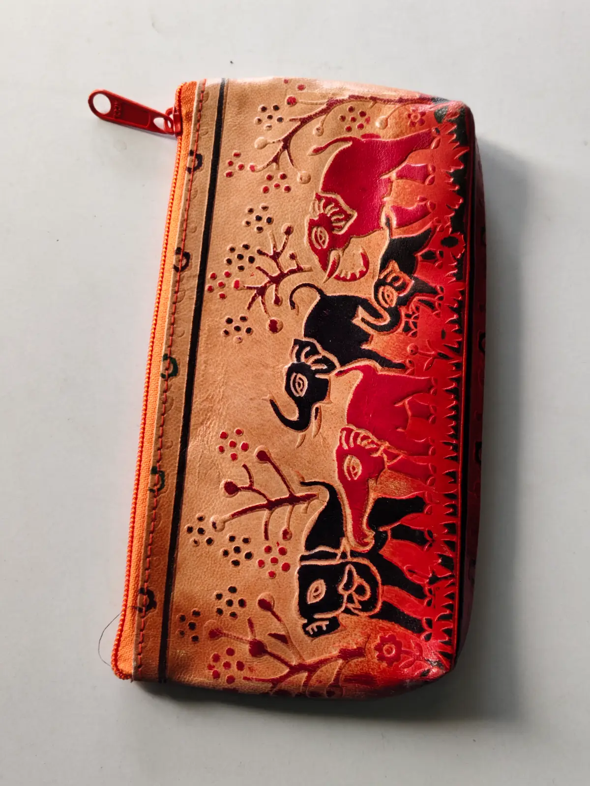 LEATHER HANDICRAFT Shantiniketan Pure Leather Multi Colour Traditional Printed Clutch Purse for Women and Girls |đ Size: 8 inch Long à 4 inch Wide (Quantity 1 Piece)