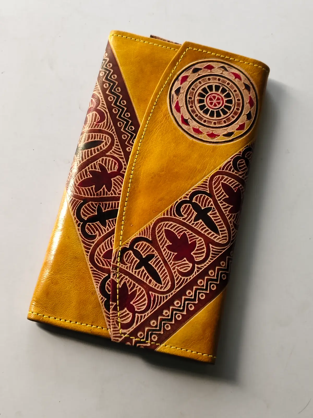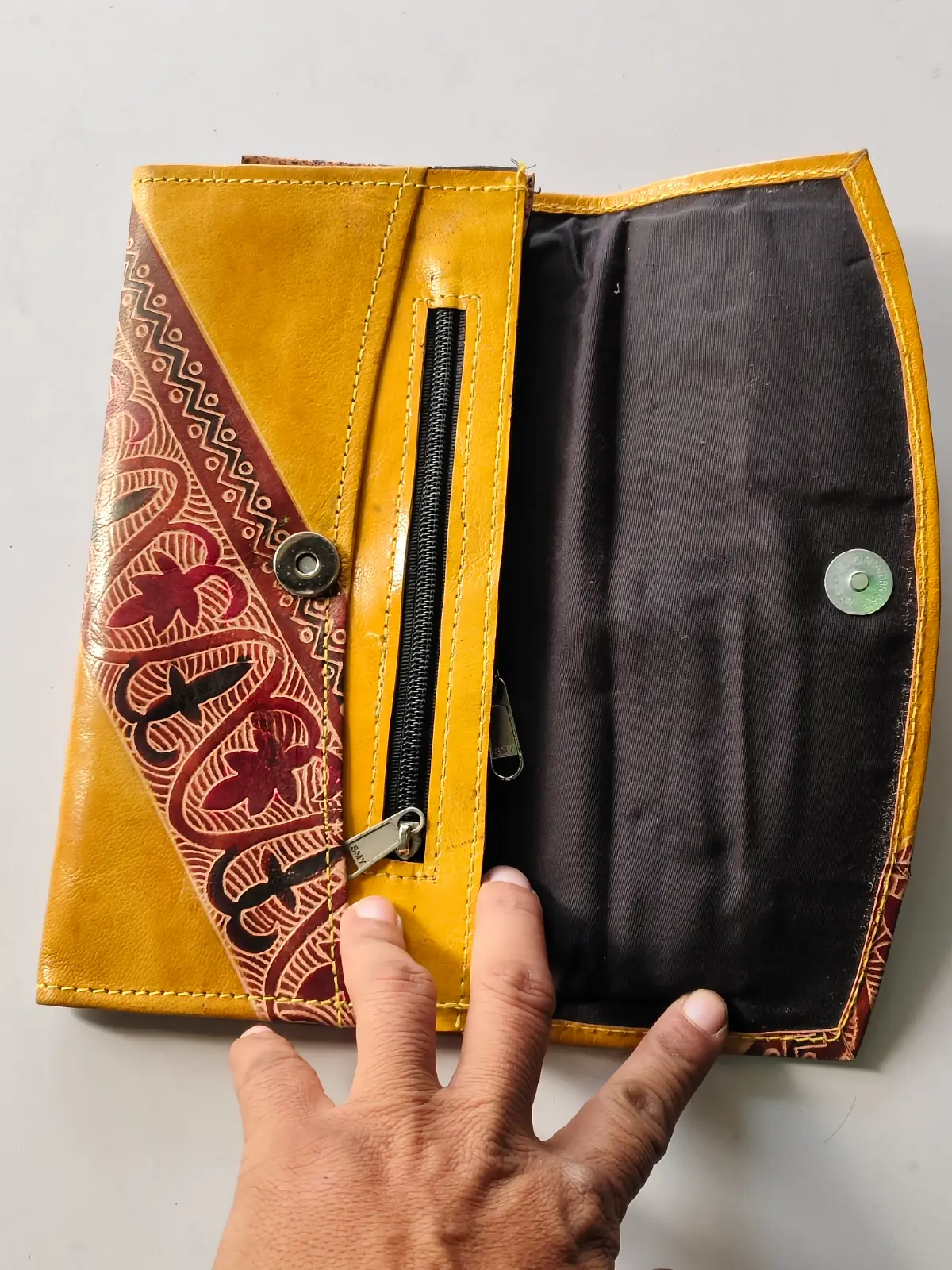 LEATHER HANDICRAFT Shantiniketan Pure Leather Multi Colour Traditional Printed Clutch Purse for Women and Girls |đ Size: 10 inch Long à 5.5 inch Wide (Quantity 1 Piece)