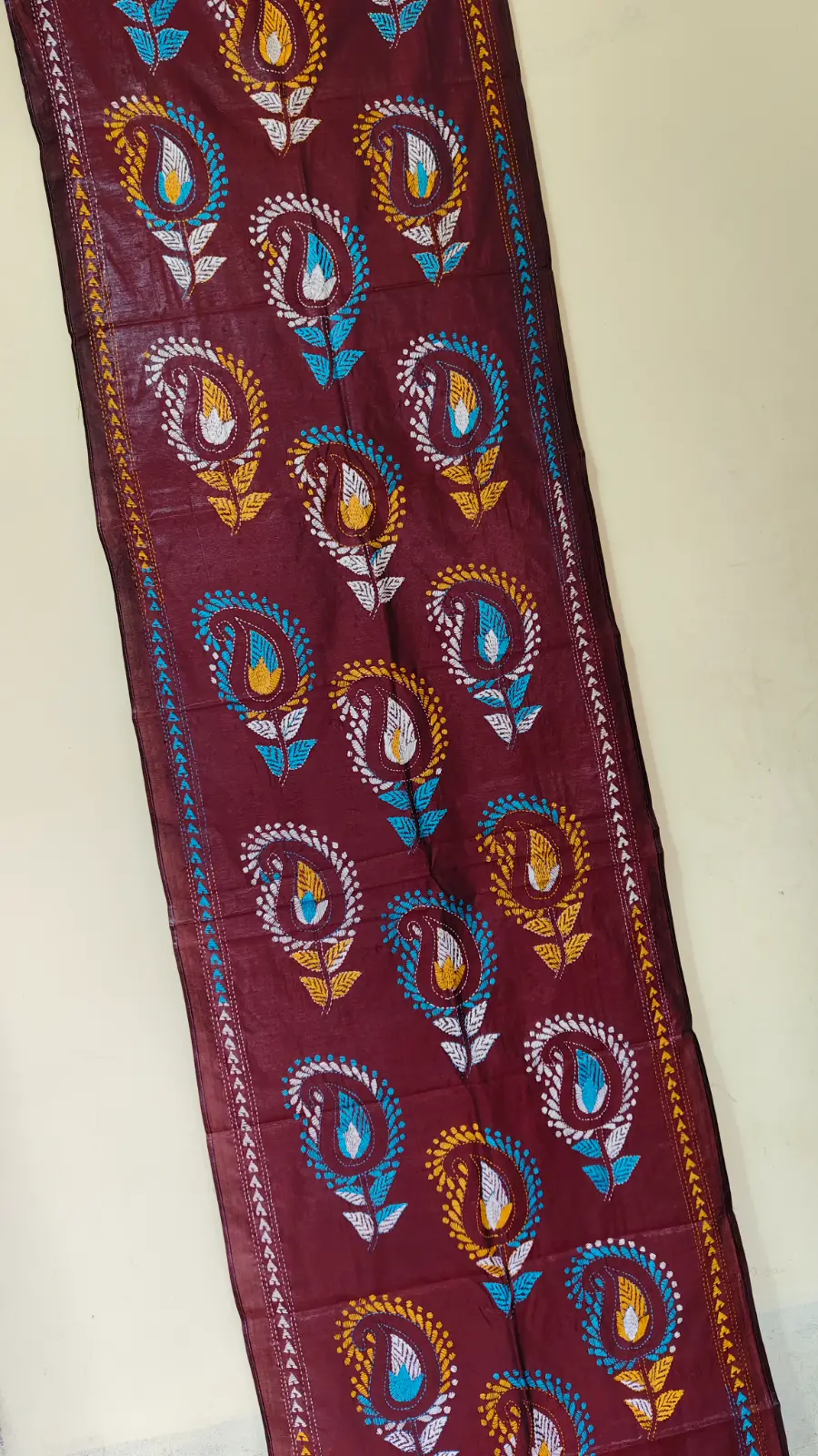 Maroon Silk Kantha Stole – Flower ornament design