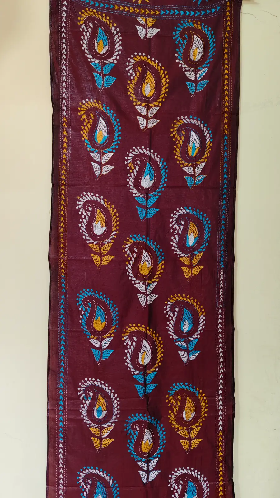 Be the first to review “Maroon Silk Kantha Stole – Flower ornament design”