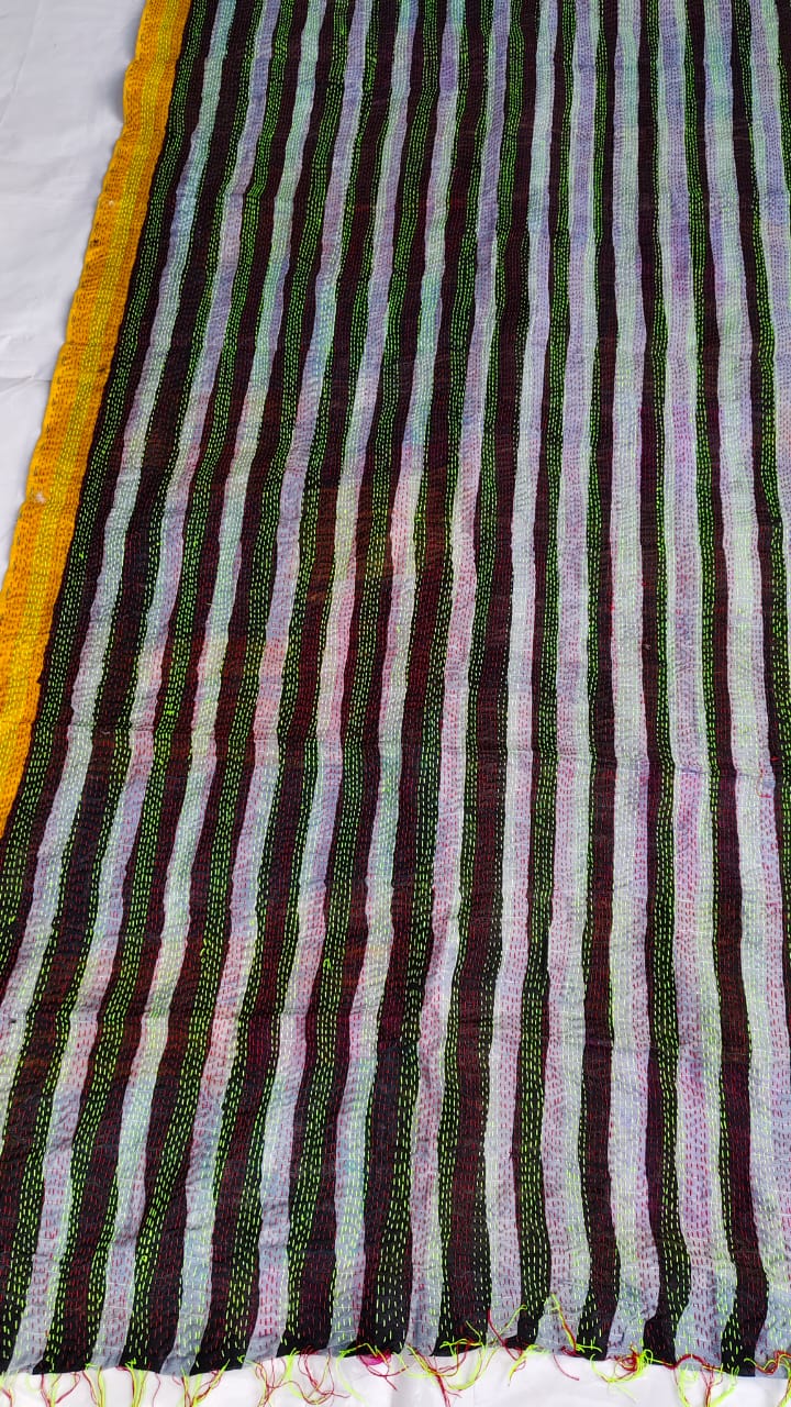 Multicolor Silk Patchwork Kantha Stitch Stole