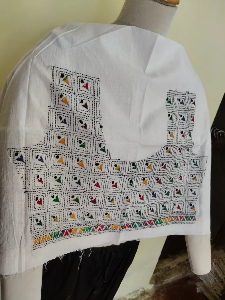 ✨ Bring a touch of pure Bengali tradition to your outfit with this Kantha stitch blouse material.