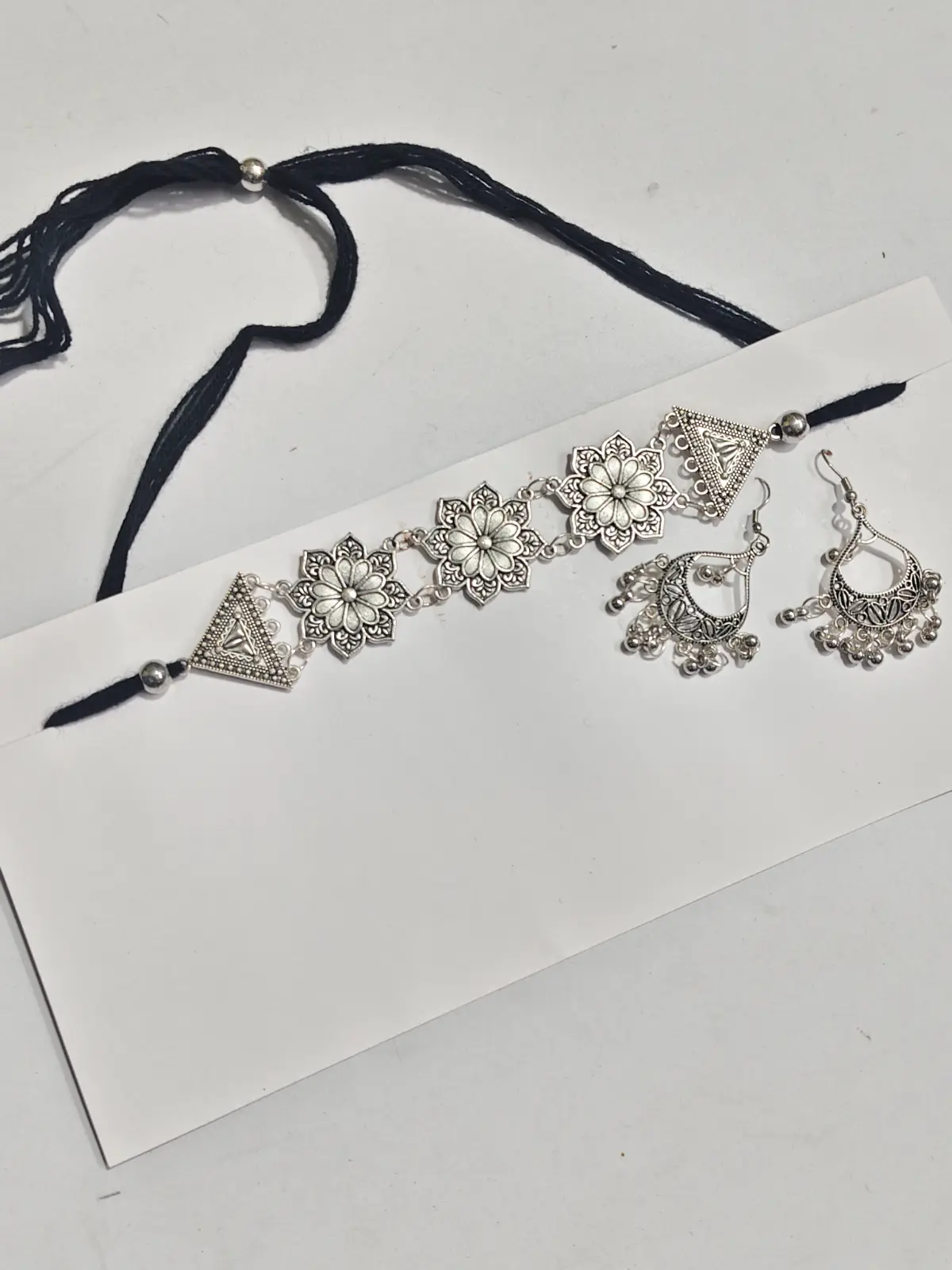Oxidised Necklace jewellery adjustable Chain – With Matching Earrings