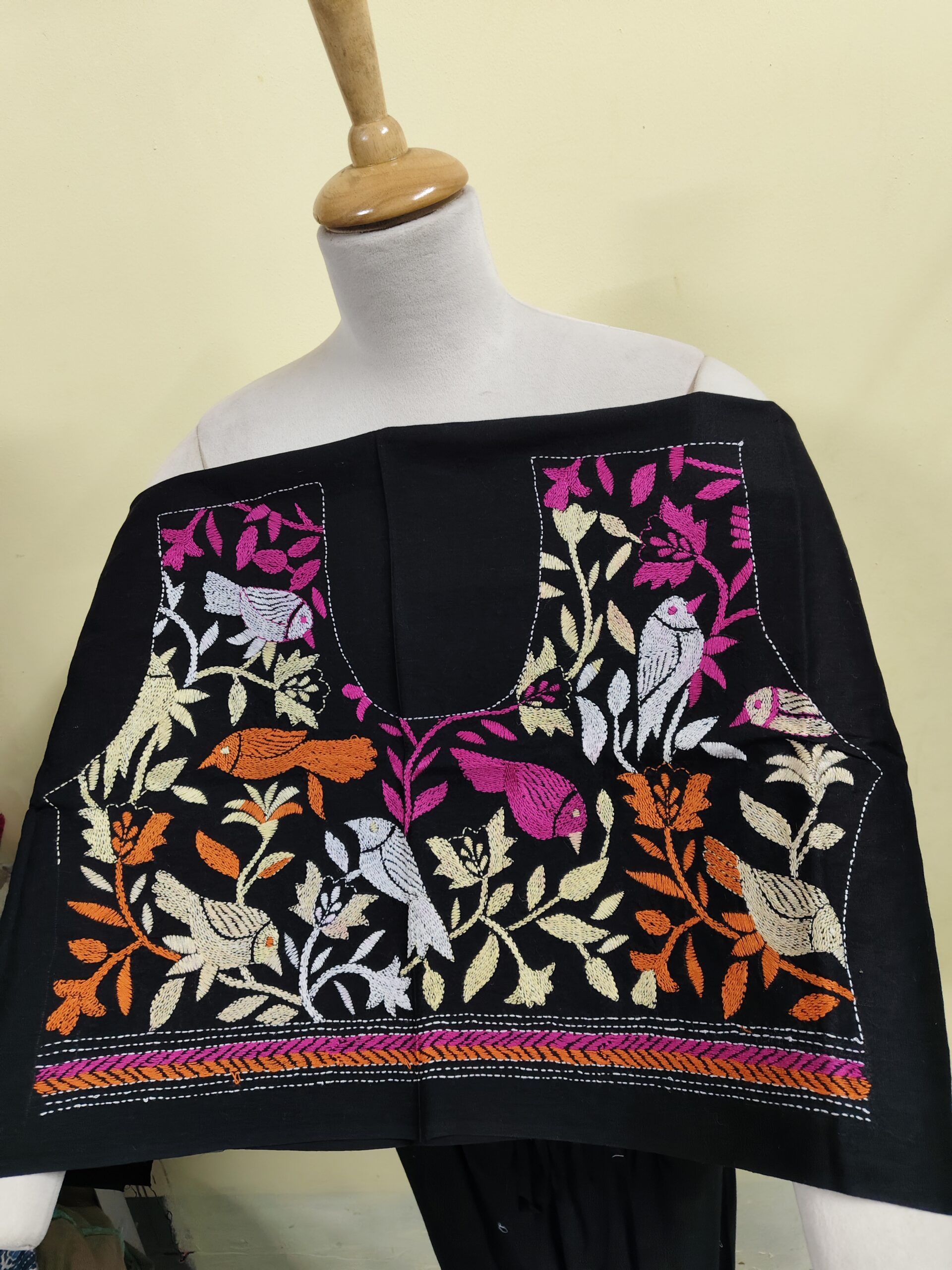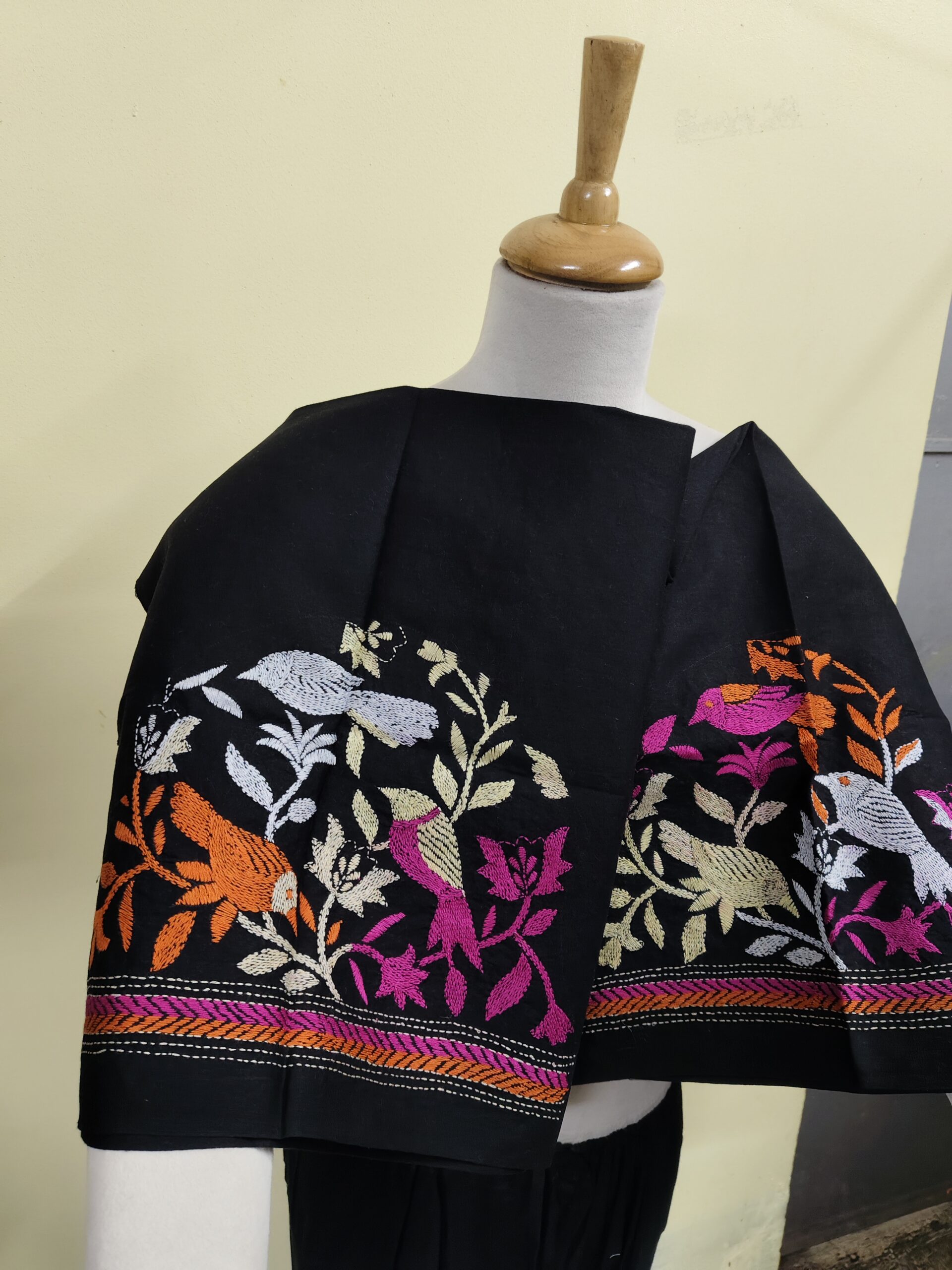 Be the first to review “Premium Cotton Kantha Blouse Piece – Multicolour Bird & Floral Hand Embroidery”