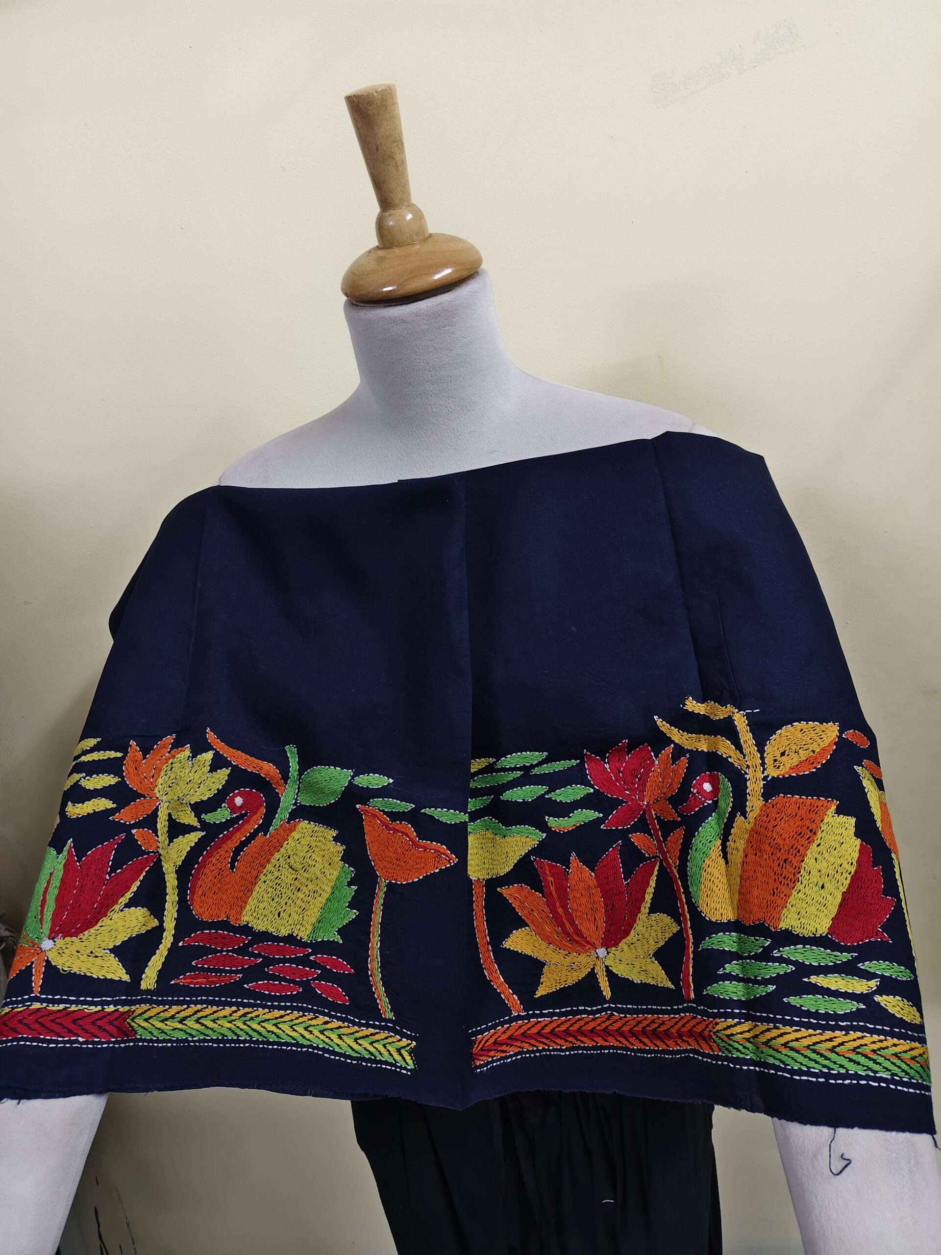 Premium Cotton Kantha Stitch Blouse Material – Swan & Lotus Design