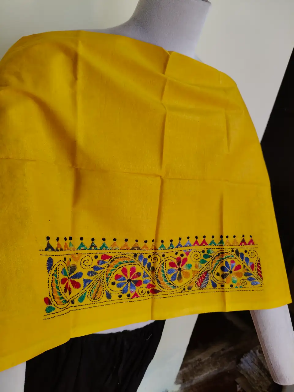 🪡 Craft: Delicate and intricate Kantha stitching, which is highlighted in flower and leaf motifs