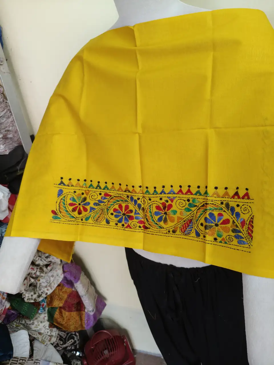 This product is a cotton Kantha stitch blouse piece. It is an Indian rural craft. These products are made by rural women. It is one of the most valuable and traditional handicrafts of India.