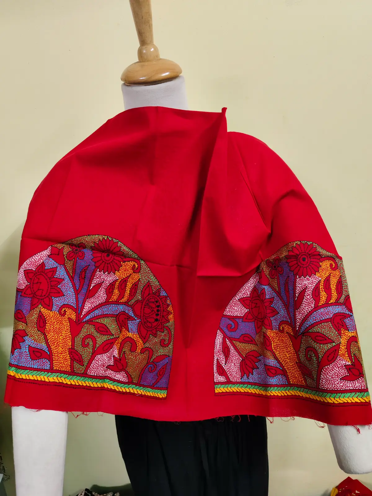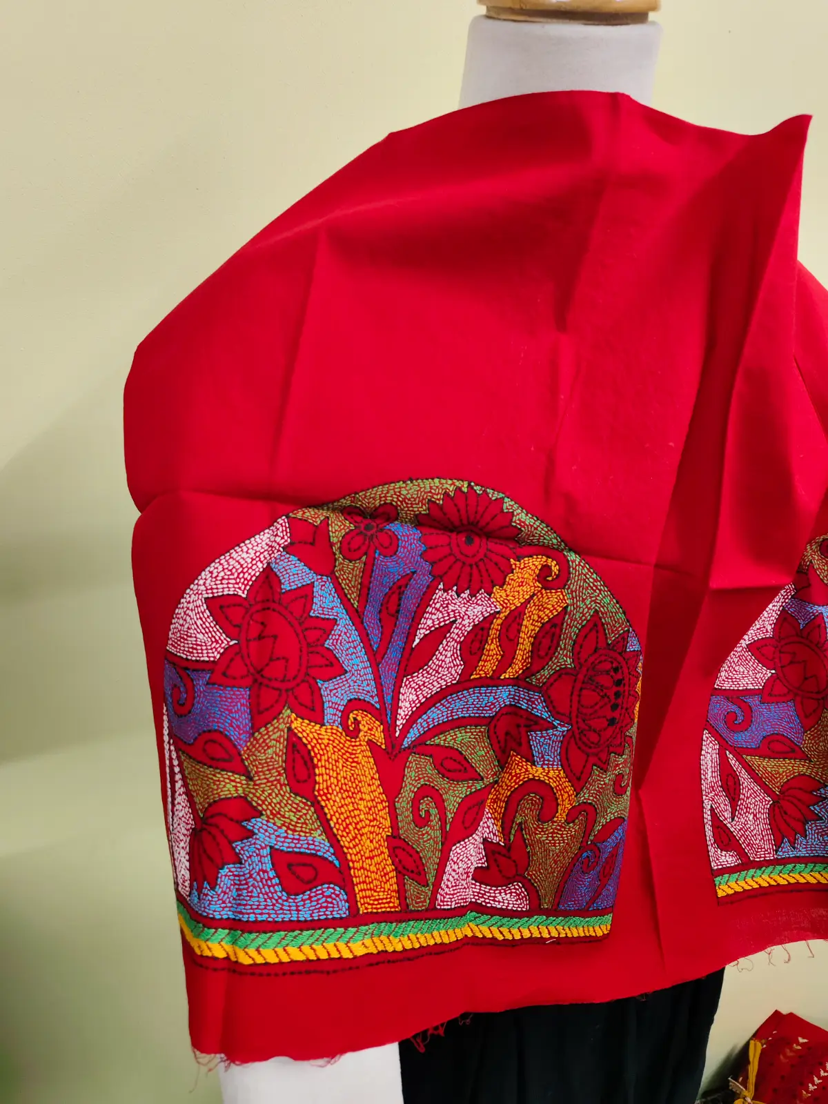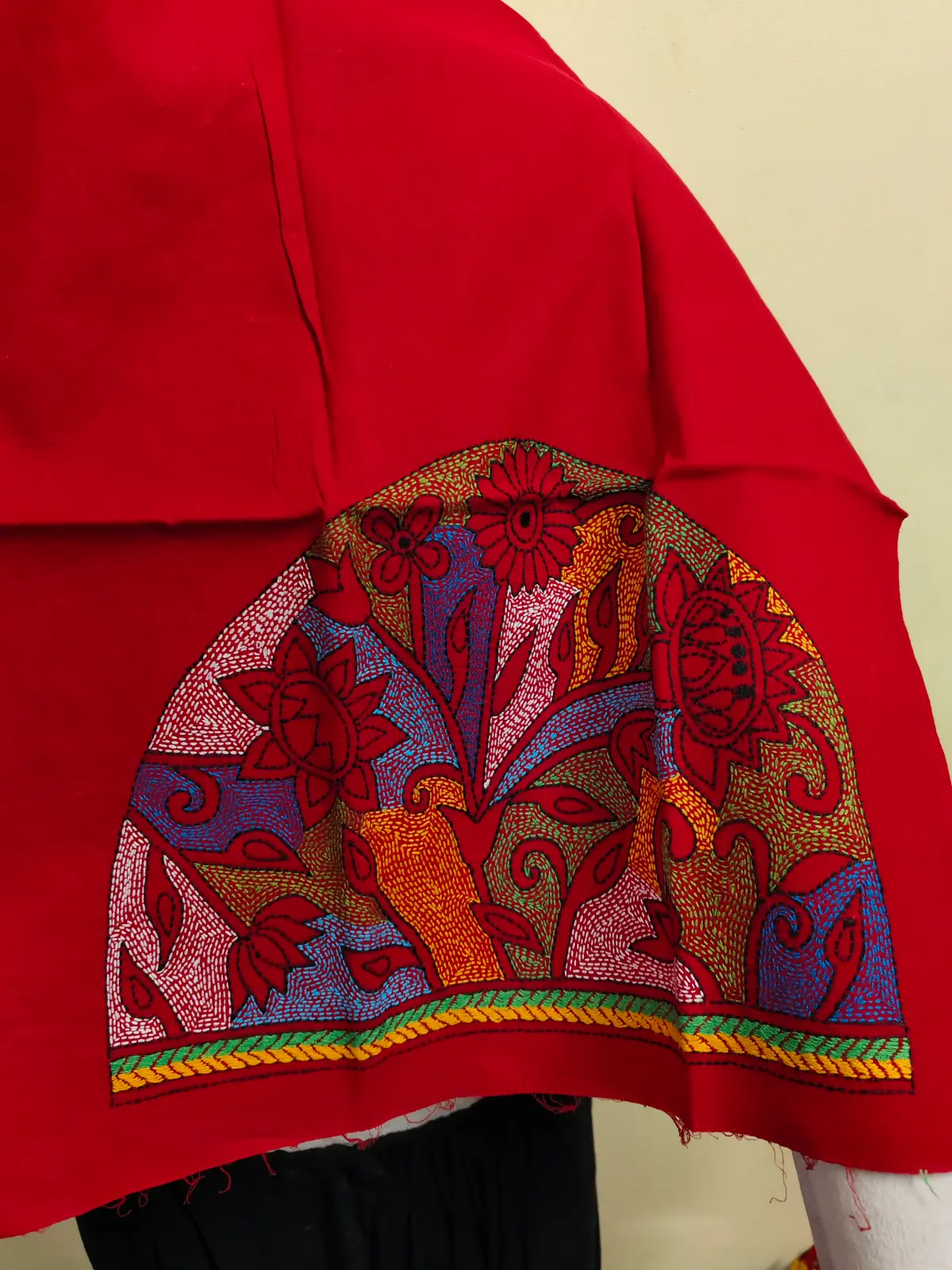 🎨 Embroidery Thread: Colors: yellow Base, with Multicolor Thread , Red, Blue & White ,Threadwork