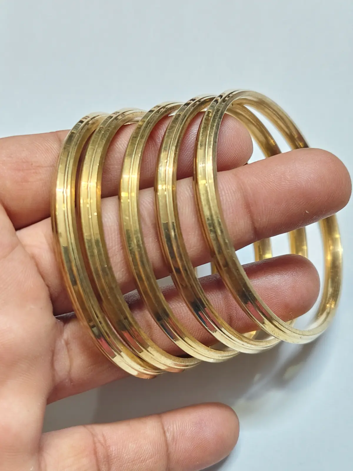 Since this design is in huge demand abroad, we are exporting this brass bangle design in large quantities to European countries. It is also in high demand in India. While making it, we made sure that it forms a perfect round shape and its width is kept at 8 mm so that the width to length ratio is sufficient to give it an attractive look.