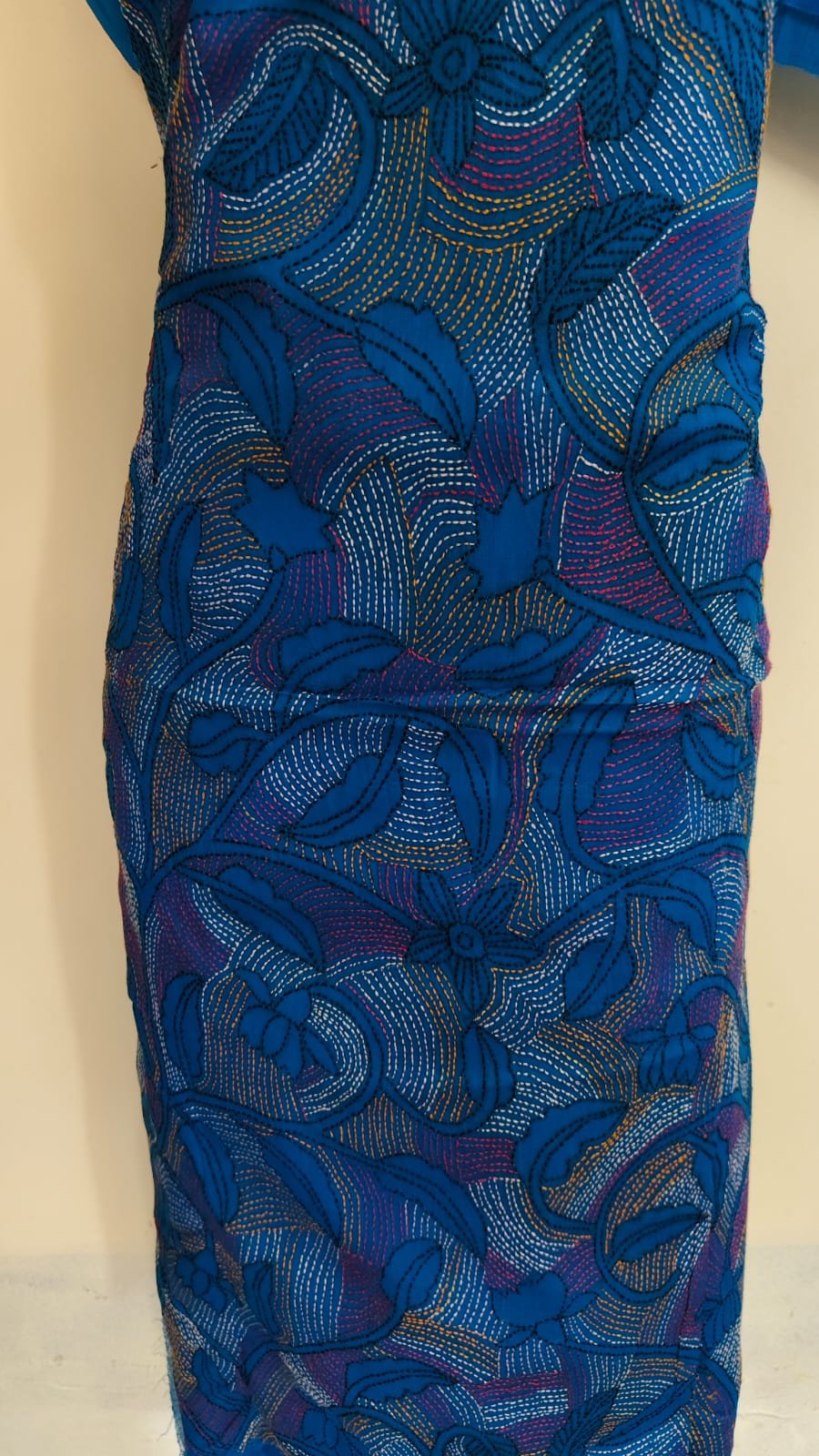 Pure Cotton Blue Kantha Stitch Salwar Suit Material – Handcrafted Multicolor Embroidery