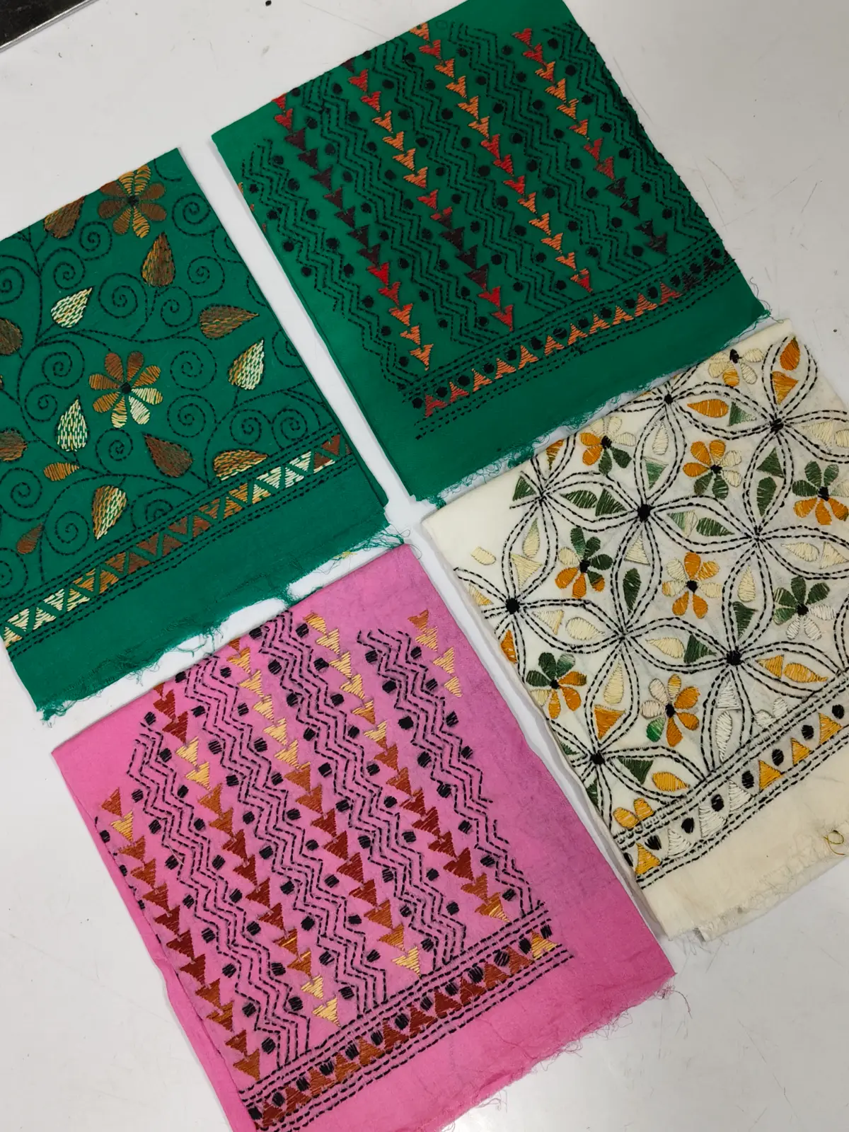 Pure Cotton Kantha Stitch blouse Material (4piec)