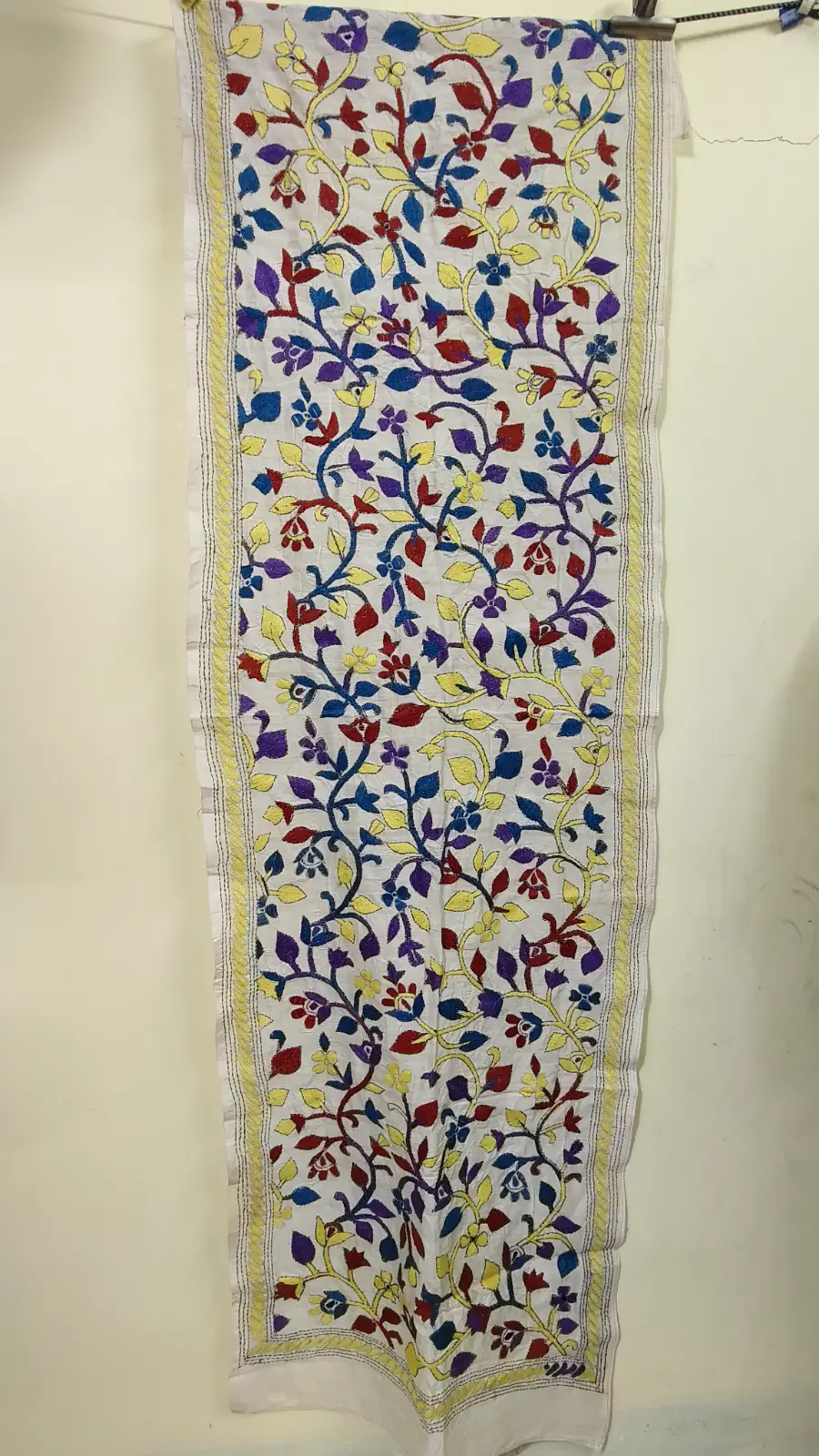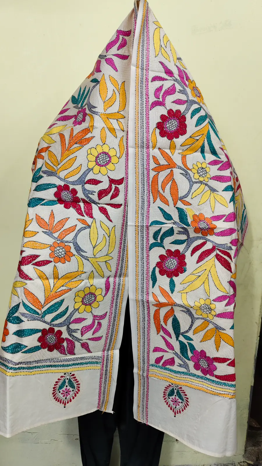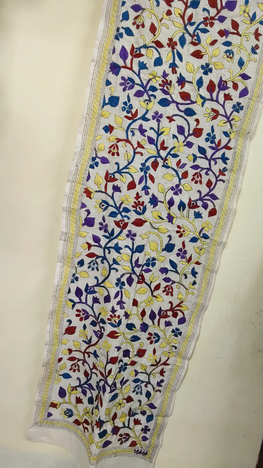 Handicraft: Tussar Silk Kantha Stitch Stole for women and girls 📏 Size: Length – 2.15 Meter, Wide – 22 Inch, (Quantity 1 piece)