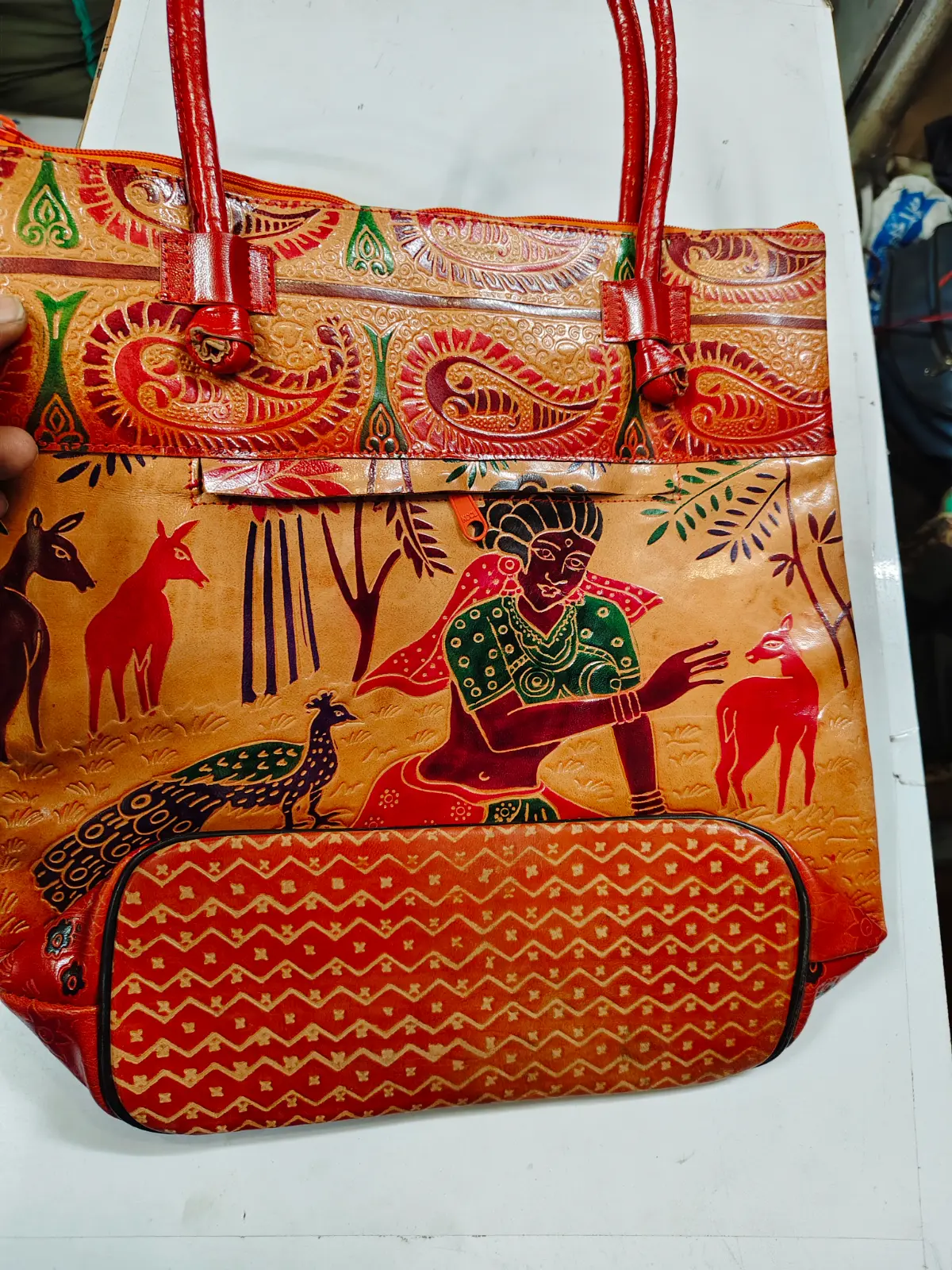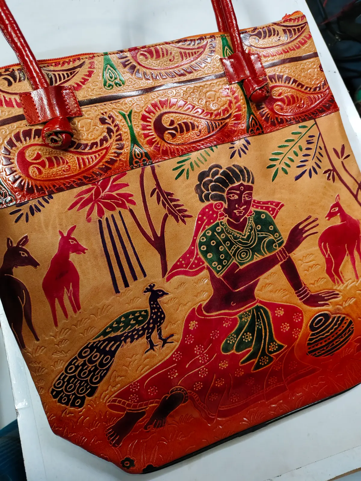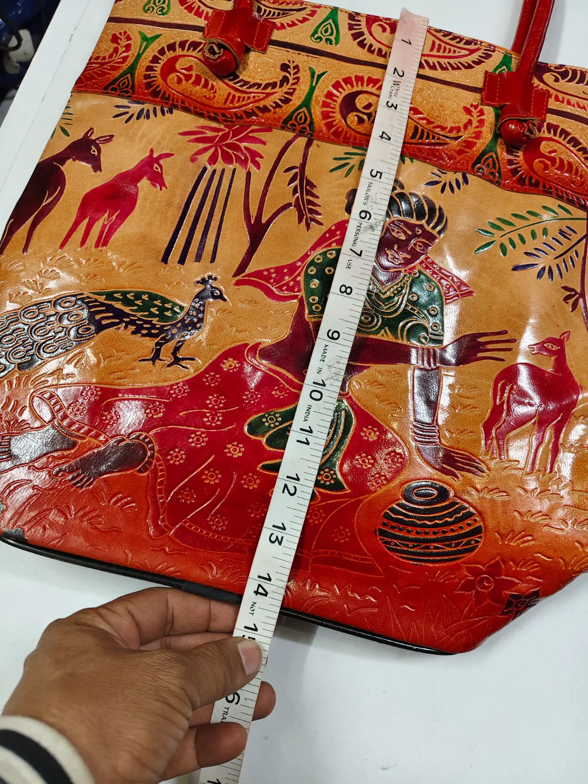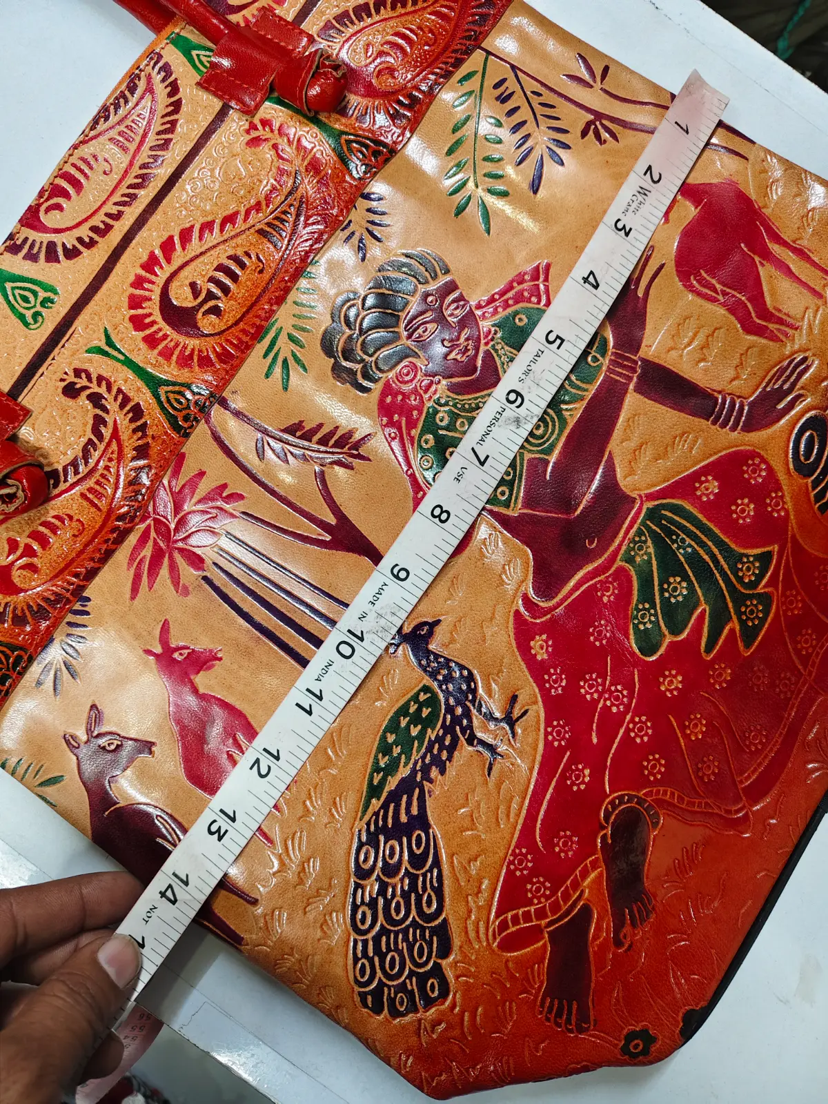 Leather Handicraft Shantiniketan Pure Leather Printed Handbag Purse | Dimension: – Length 14.5 inch, Height 14 inch, x 5 inch” | (Quantity: 1piece)