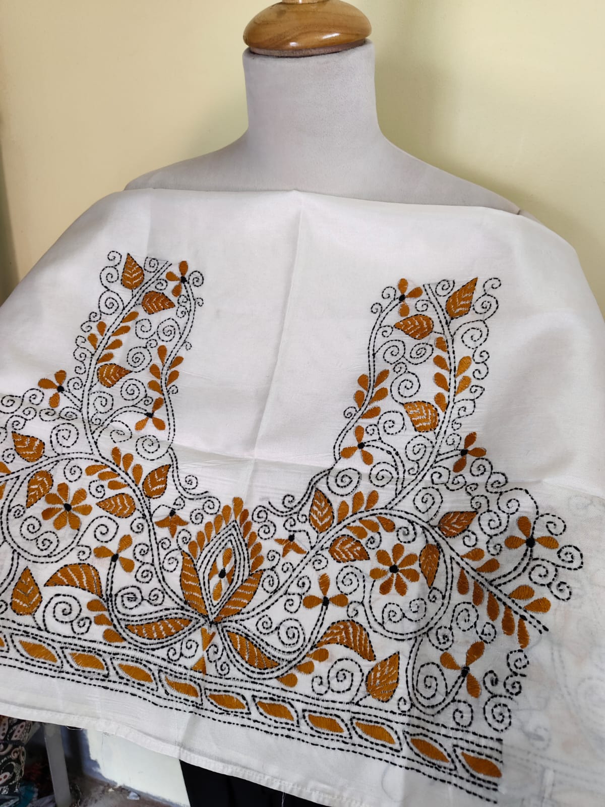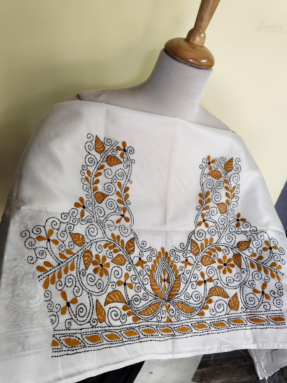 ✨ Bring a touch of pure Bengali tradition to your outfit with this Kantha stitch blouse material.