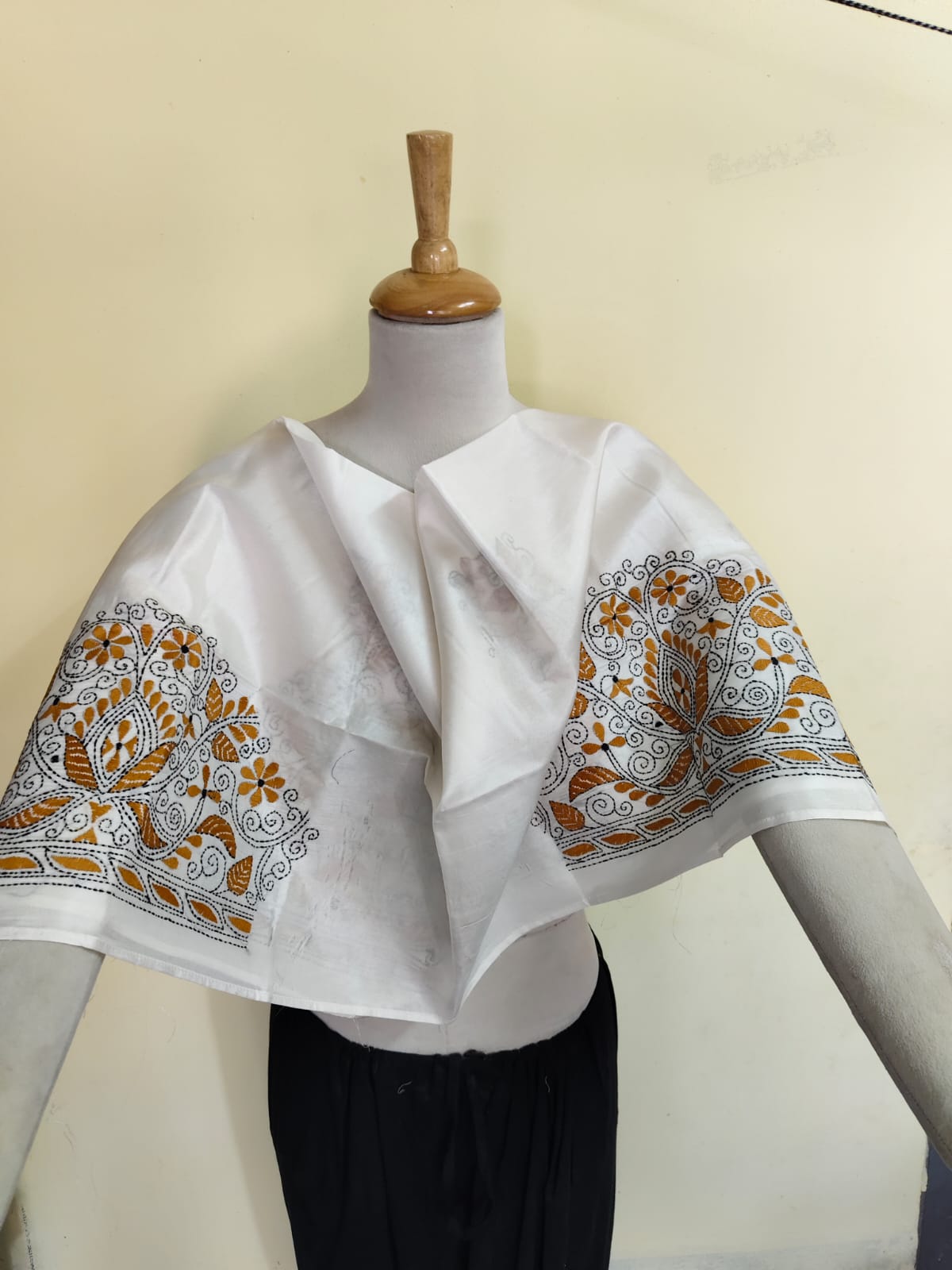 White Silk Kantha Stitch Blouse Material – Handcrafted