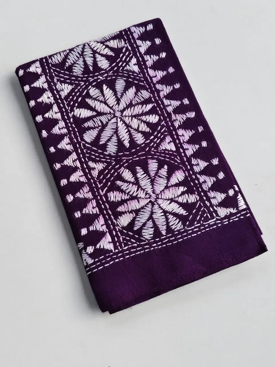 Handicraft:- Both hands work in border style, Handicraft work is being done in border style on the back of the blouse, Beautiful Handicraft Kantha Stitch Embroidery Blouse Material.