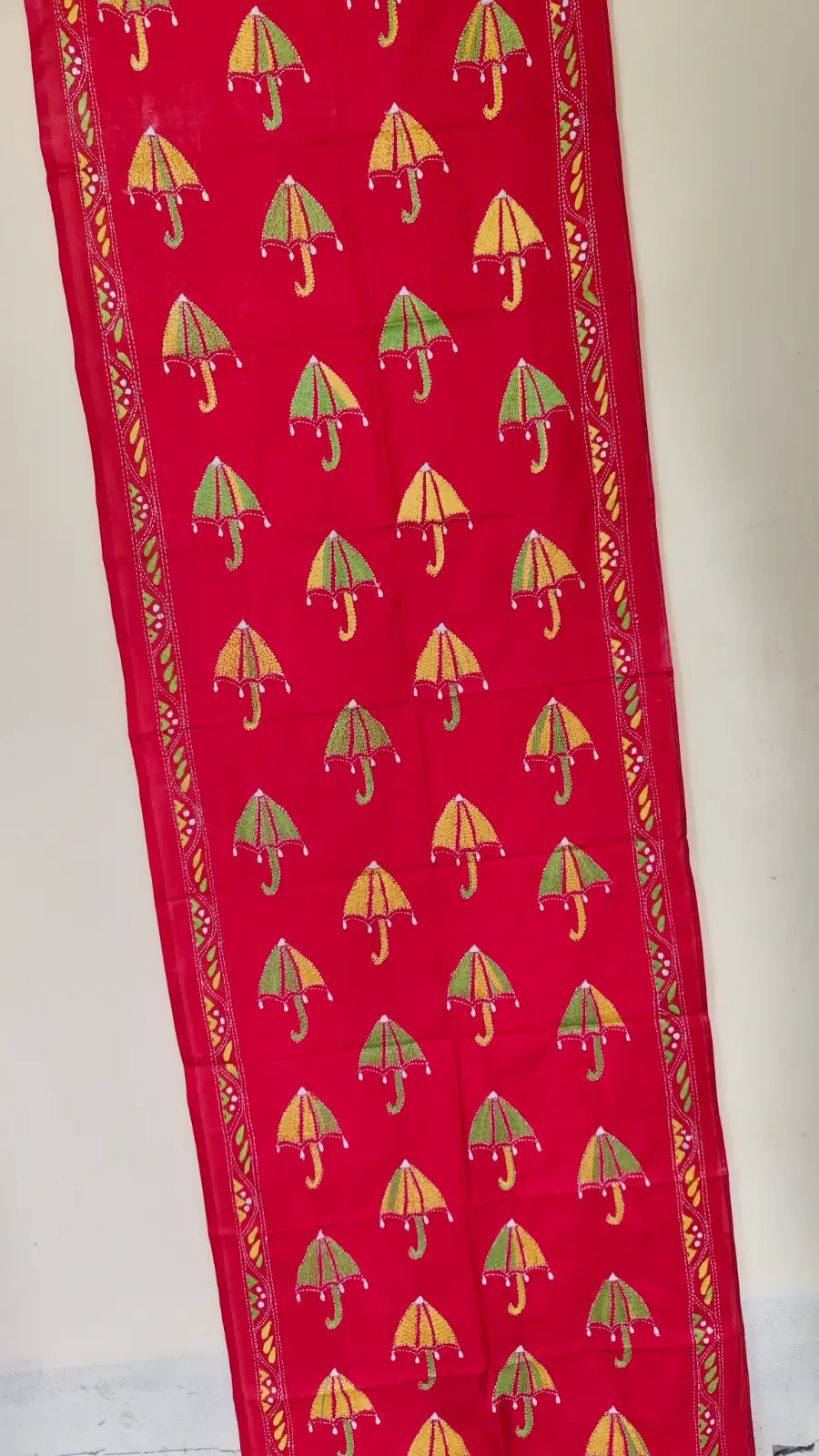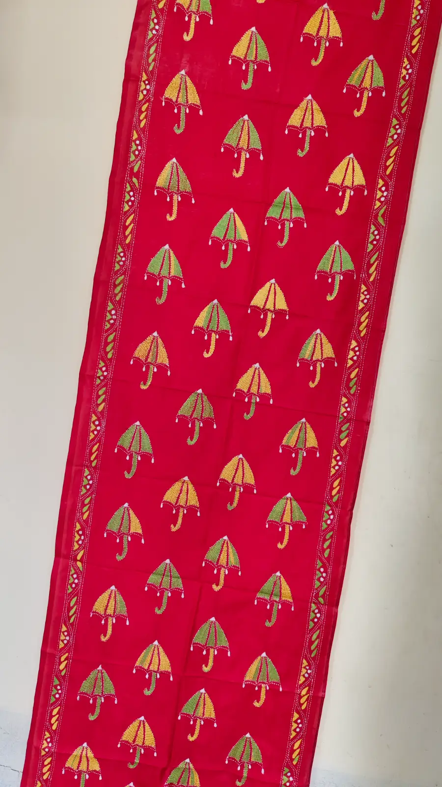 Red Silk Kantha Stitch Stole – Umbrella design