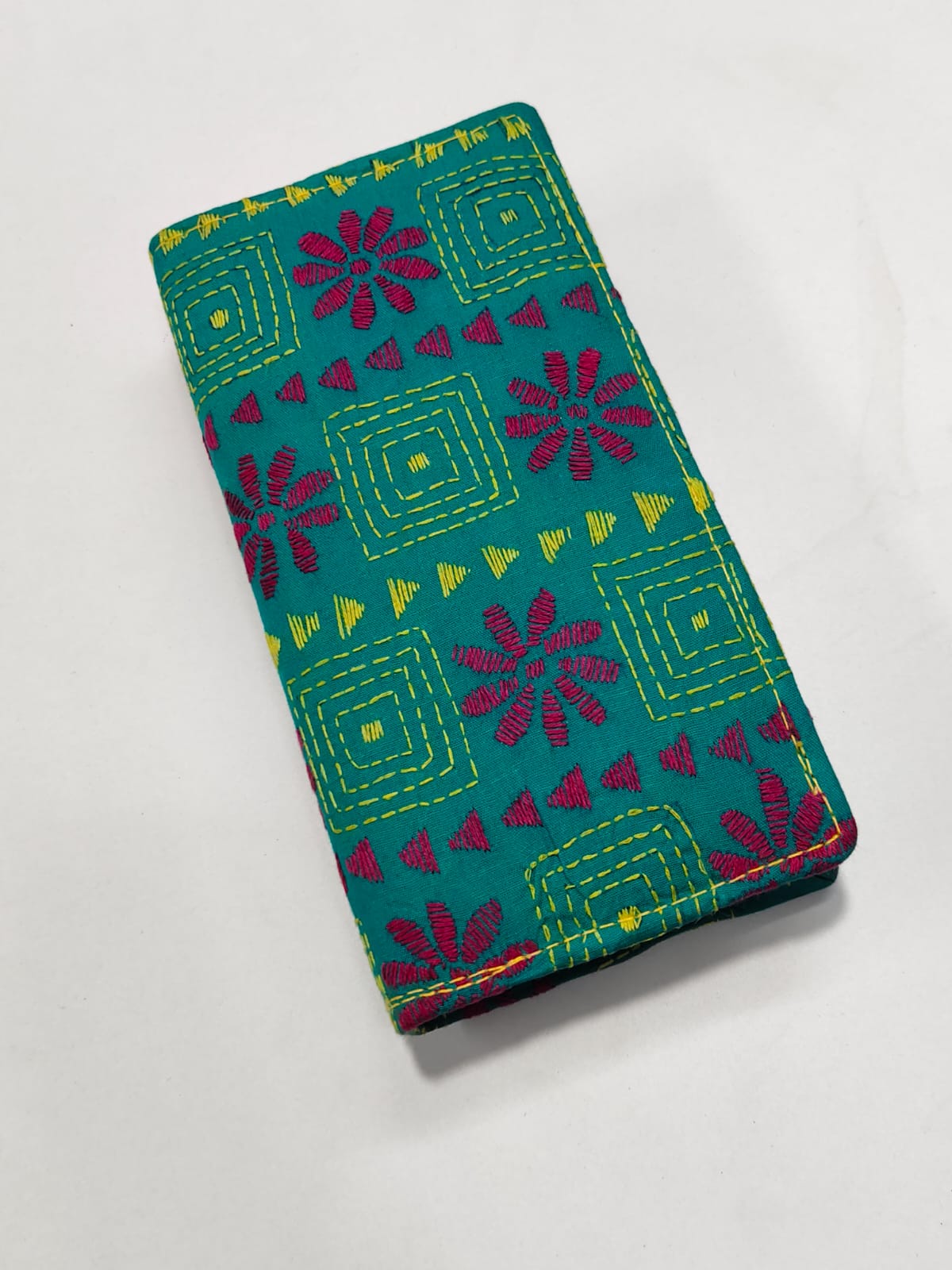 Stylish Handcrafted cotton wallet with Kantha stitch embroidery. Features two zipper compartments and Multiple pockets. 📏 Size: Long 8 inch, Wide 4 inch, Height 1.5 inch (Quantity 1 piece)