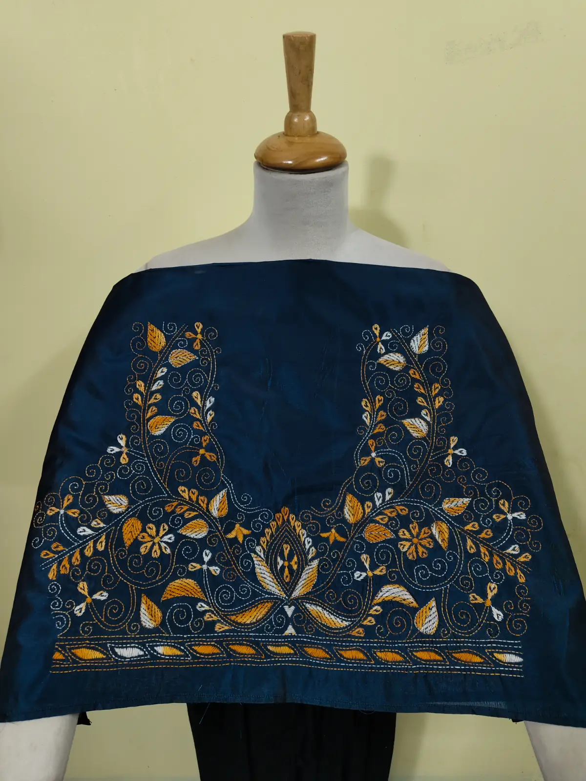 Silk Kantha Stitch Blouse Material – Peacock color Yellow and white flower