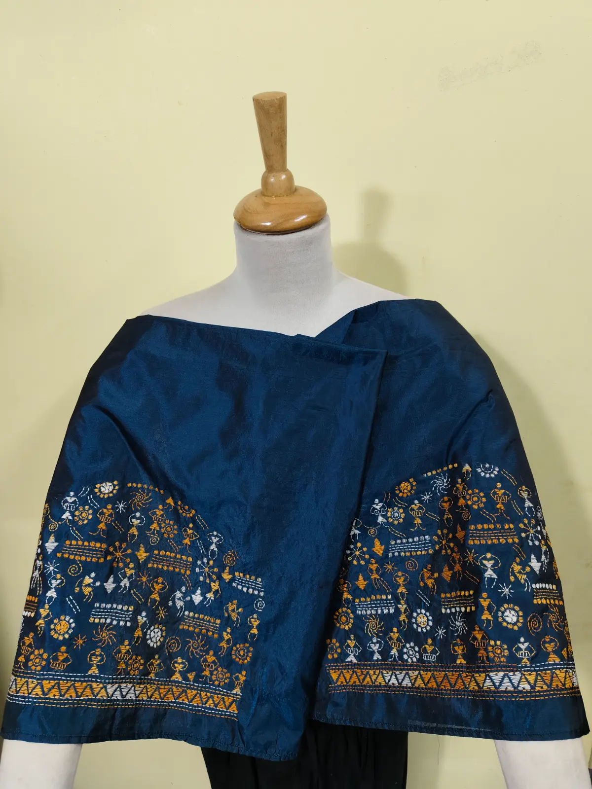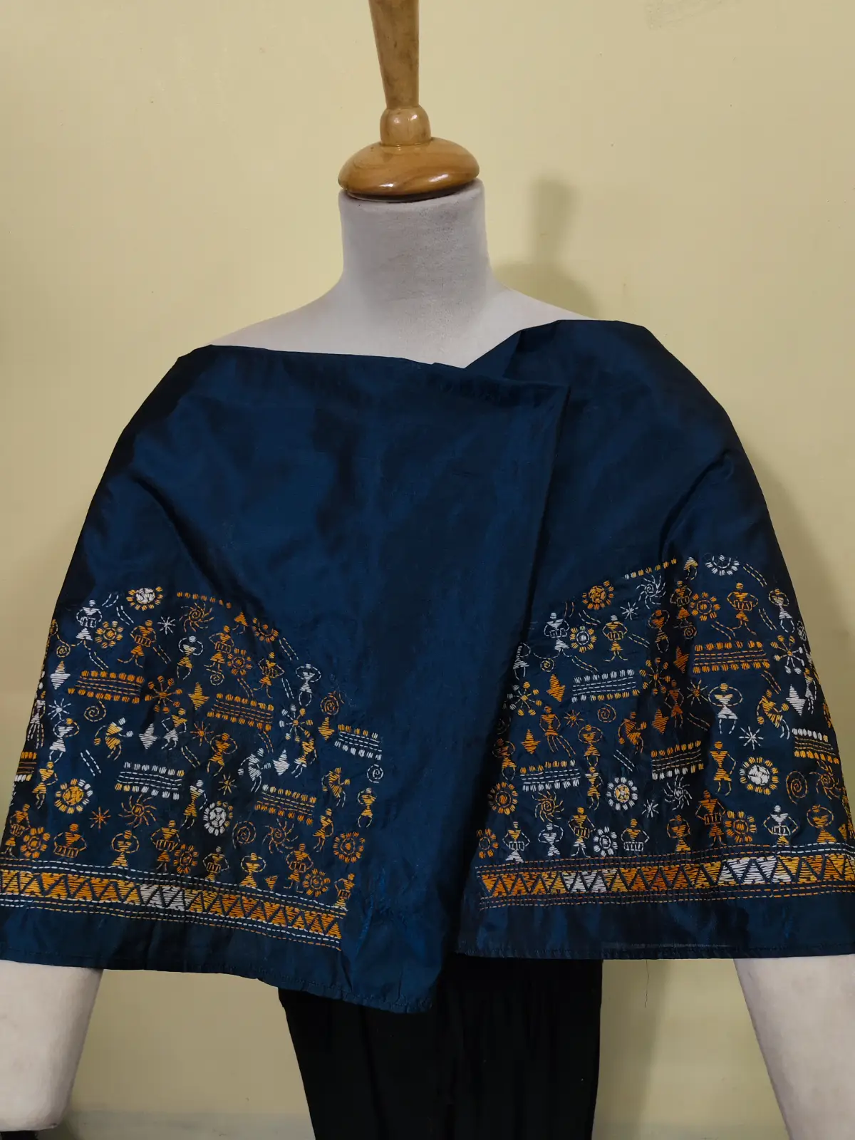 Silk Kantha Stitch Blouse Material – Tribal & Floral Peacock color