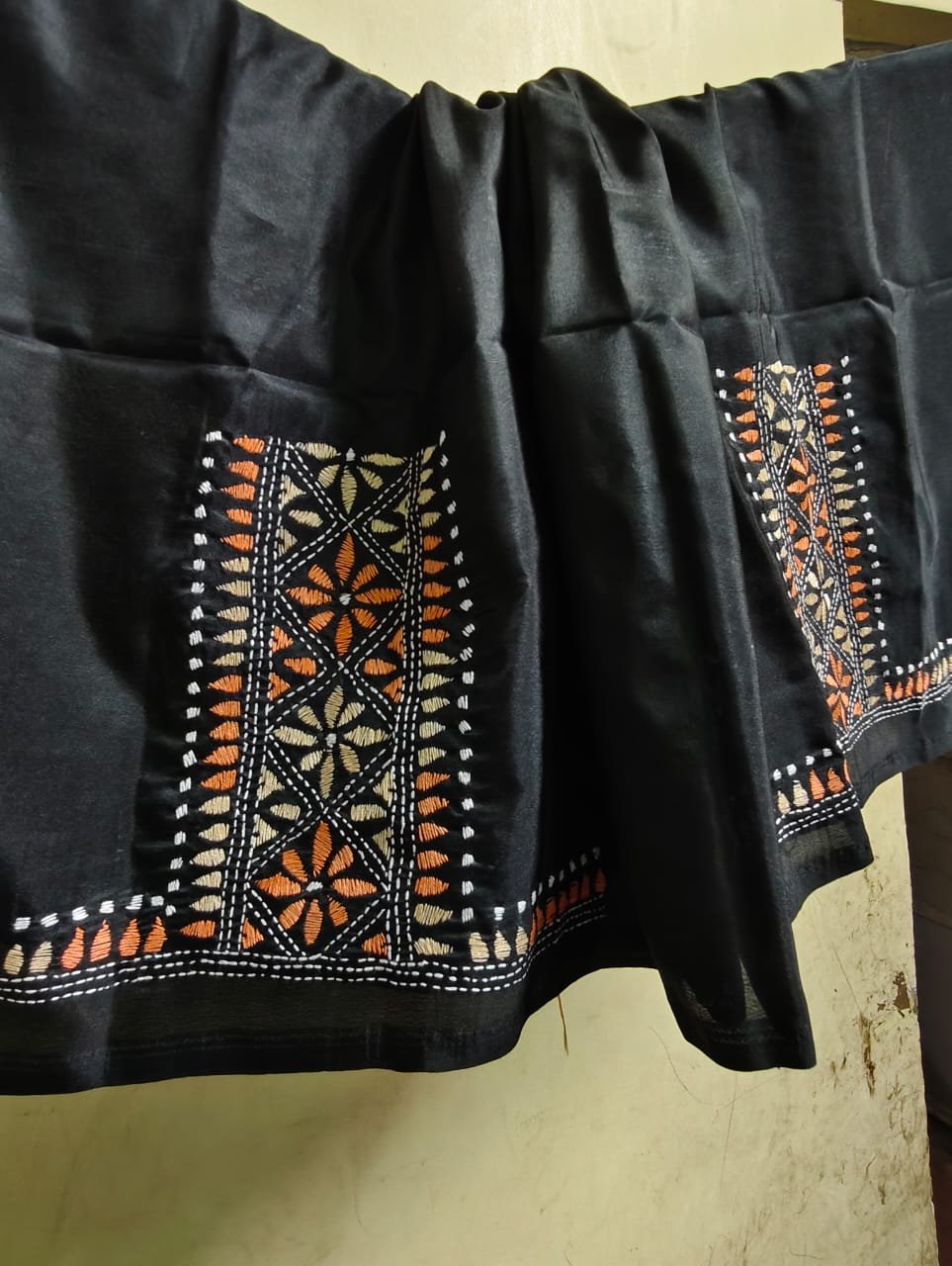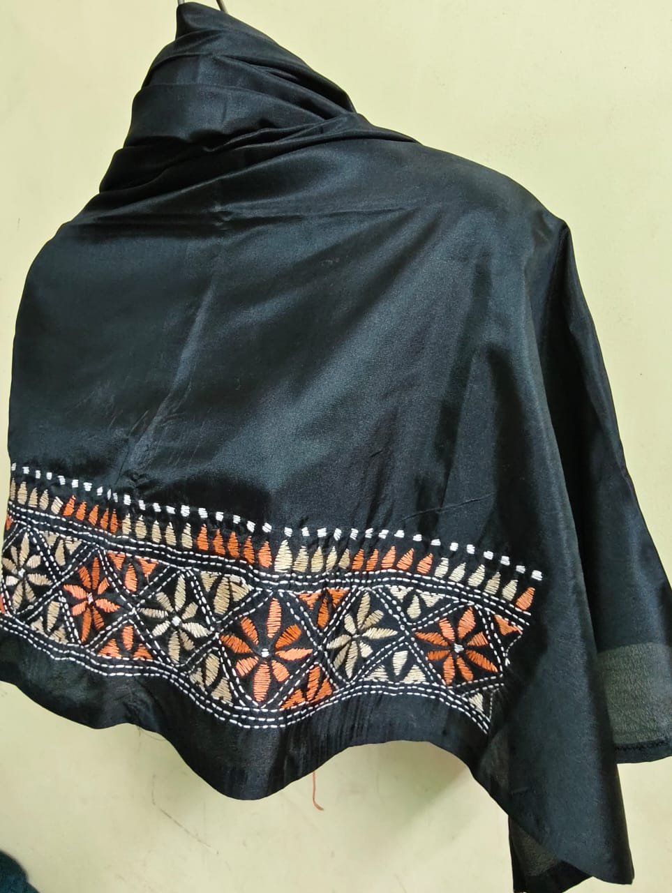 Handicraft:- only border style handwork Kantha stitch | Material: high-quality silk fabric, Cloth 44/36 inches (Quantity 1 piece)